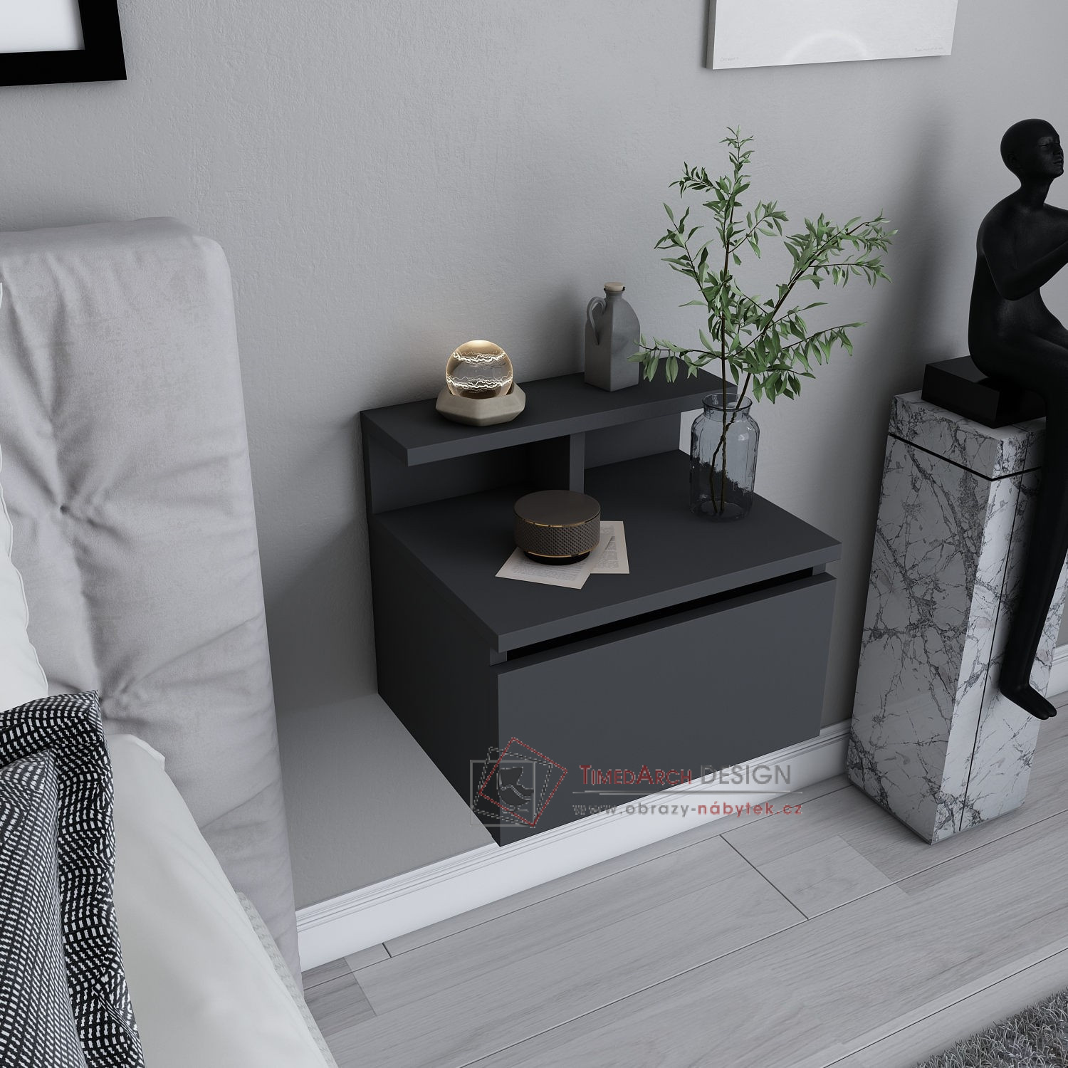 Tento noční stolek je vyroben ze 100% dřevotřísky s melaminovým povlakem a je navržen tak, aby vydržel. Tloušťka 18 mm zajišťuje robustnost a stabilitu, zatímco antracitová barva dodává nádech moderního šarmu. Díky kompaktním rozměrům 39,8 cm na šířku, 31,9 cm na hloubku a 35 cm na výšku se perfektně hodí do ložnice jakékoli velikosti.