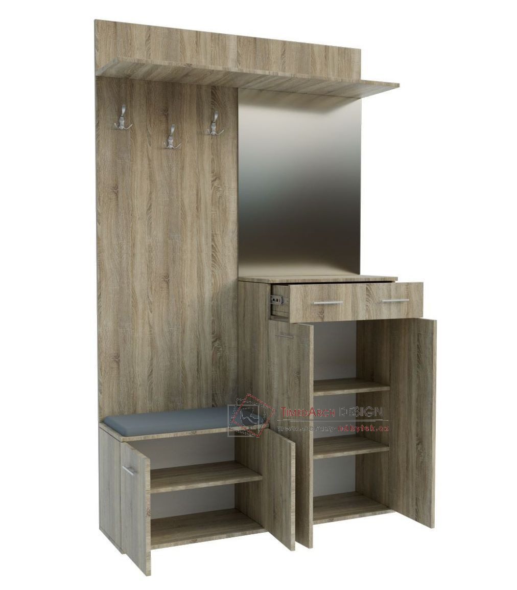 Předsíňová stěna ARMADI II je vyrobená z kvalitní laminované DTD ( zadní panel z HDF ) v barevném provedení dub artisan.