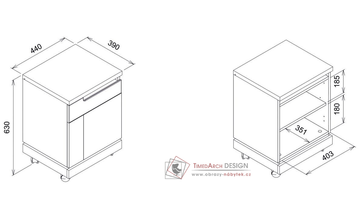 - přední plochy jsou vyrobené z lamina o síle 16 mm / MDF 16 mm
