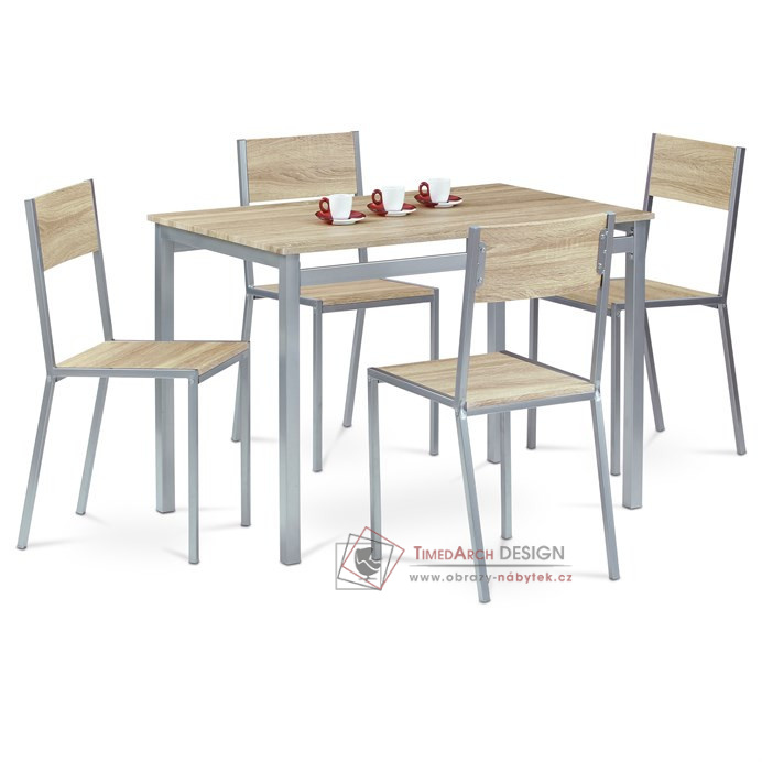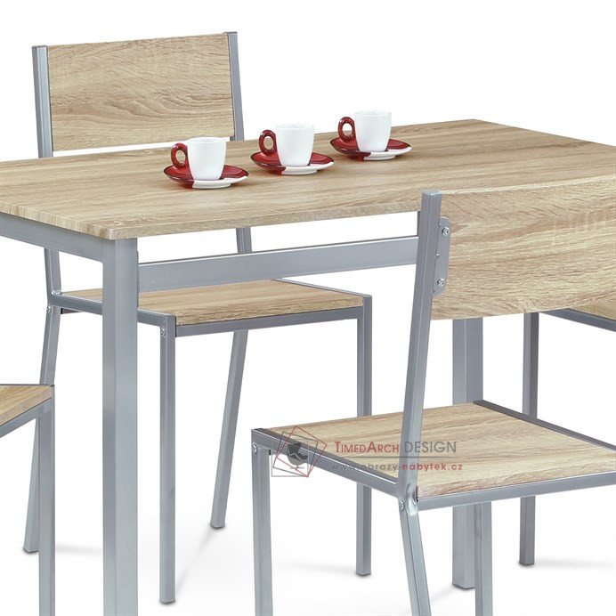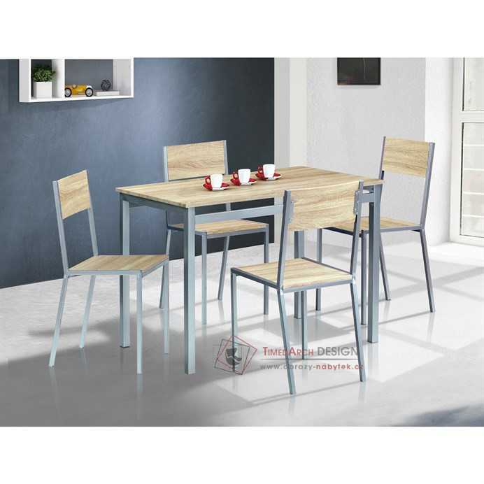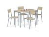 Materiál konstrukce je kov. Desky stolu, sedáků a opěráků jsou z MDF potažené dekorativní fólií.