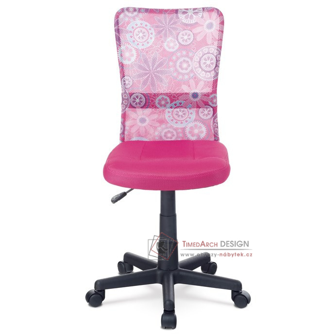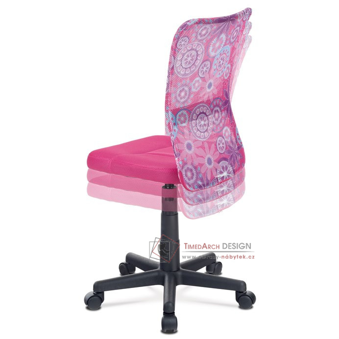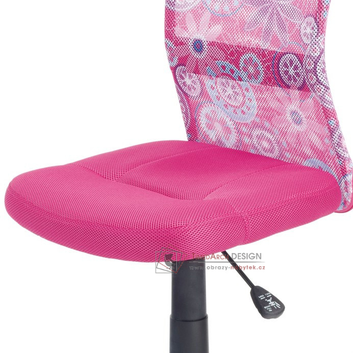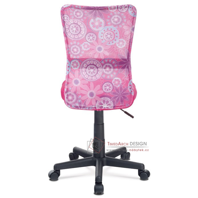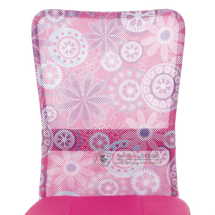 Dětská kancelářská židle čalouněná látkou MESH ve stylové růžové barvě, opěrák s motivem.