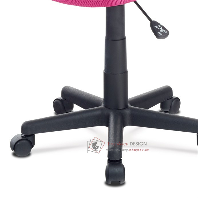 Díky plynovému pístu je židle výškově nastavitelná. Židle má také plastový kříž s plastovými kolečky vhodnými na koberce. Nosnost 60 kg.