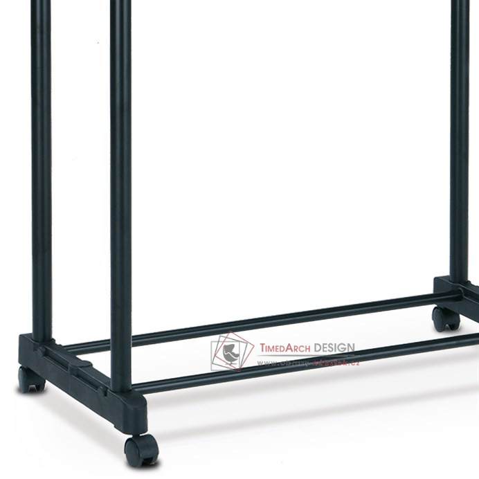 Stojan na šaty dvojramenný (ramena umístěna v konstrukci pod sebou) s pojezdem bez aretace