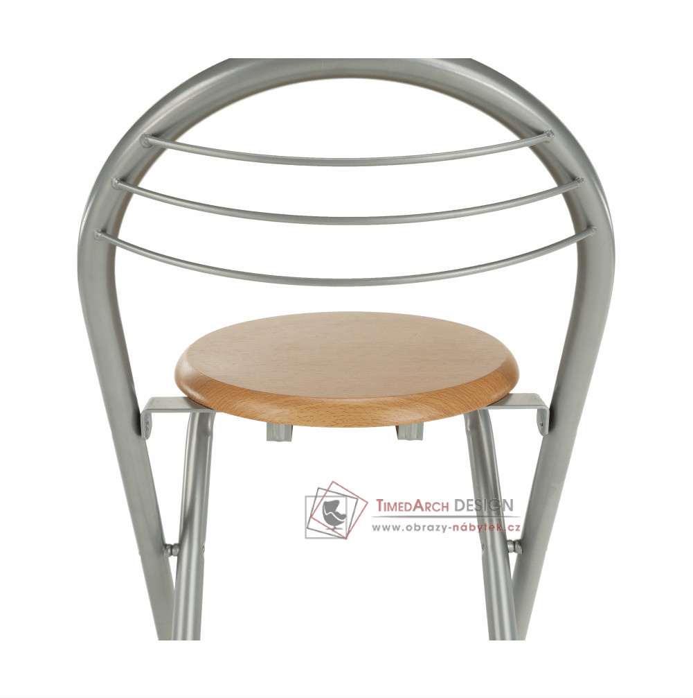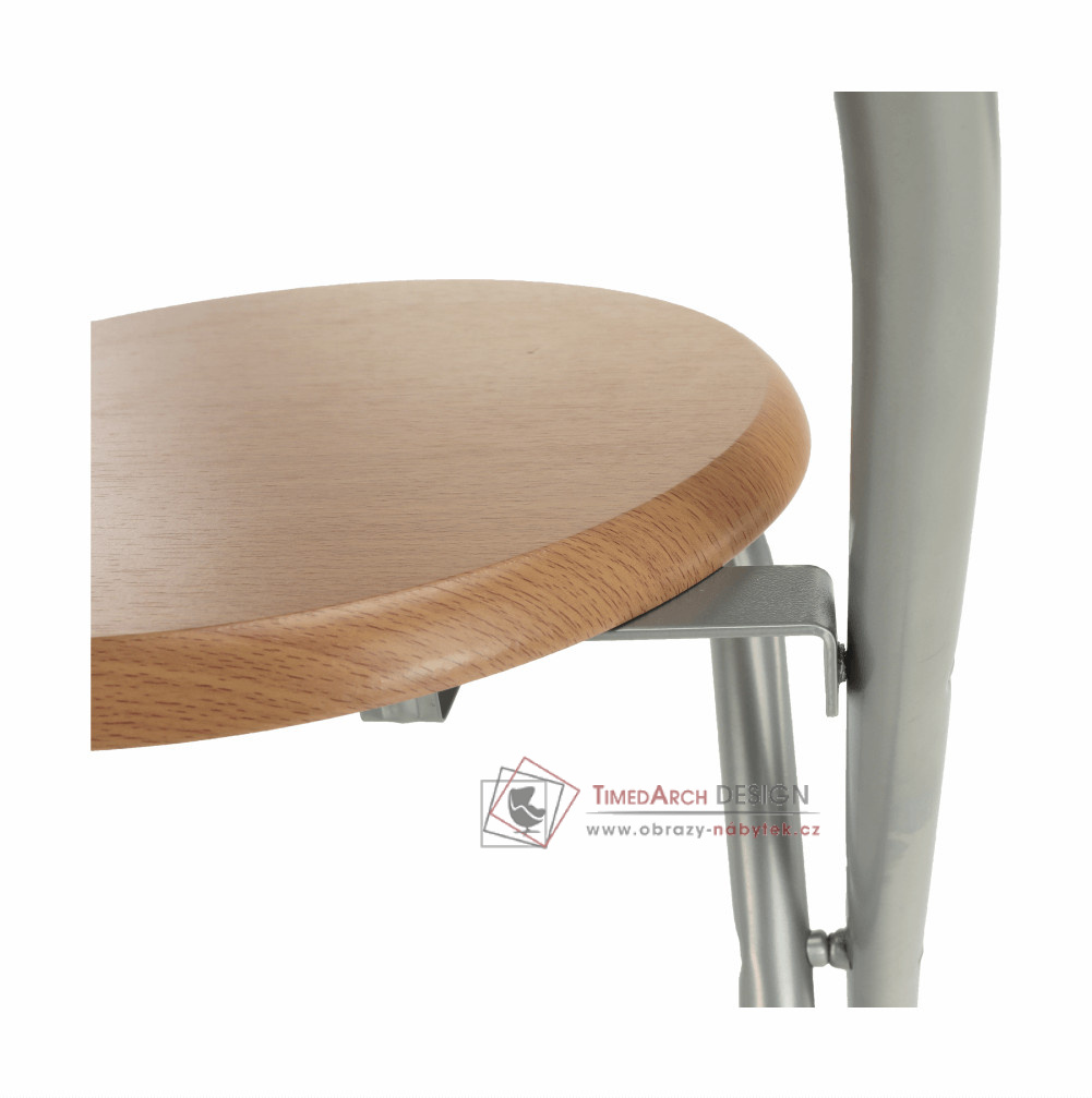 Rozměry: průměr 39 cm, výška sedu 59,9 cm. Nosnost židle 80 kg.