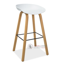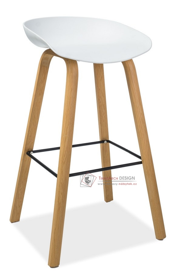 Zajímavě řešená podnož z dřevěného masivu v barevném provedení buk s kovovými prvky. Sedák je vyrobený z plastu PP ( amorfní termoplastický průmyslový kopolymer, který je odolný vůči mechanickému poškození. Tuhý, houževnatý, dle typu odolný proti nízkým i vysokým teplotám, málo nasákavý, zdravotně nezávadný. Je odolný vůči kyselinám, louhům, uhlovodíkům, olejům, tukům ) bílé barvy.