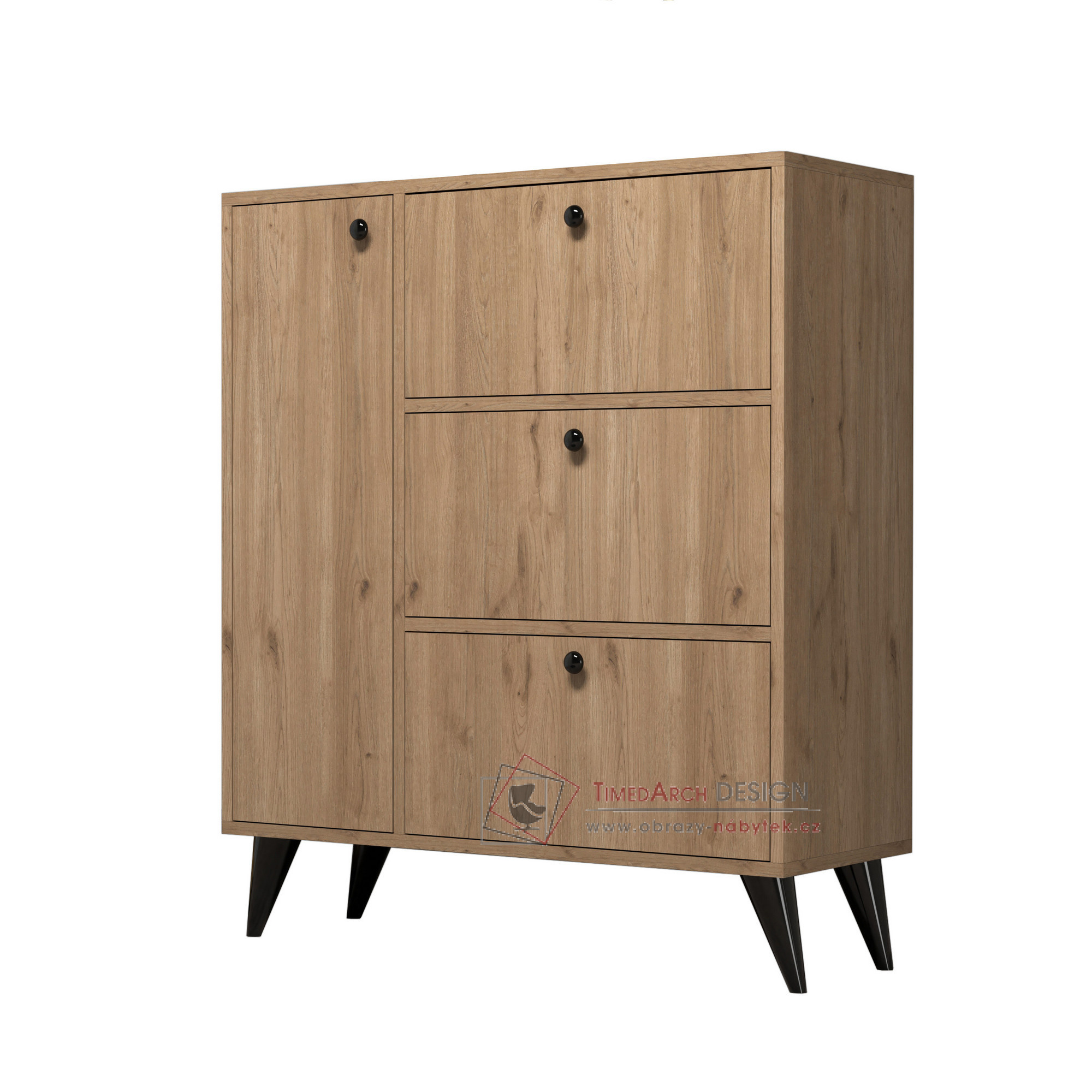 Tato skříňka na boty není jen kus nábytku, je to výrazný prvek vašeho domova. Elegantní dubová barva dodá každé místnosti nádech sofistikovanosti, zatímco bohémský koncept přináší pocit tepla a pohodlí. Se třemi prostornými zásuvkami a četnými policemi budete mít dostatek místa pro uložení veškeré vaší oblíbené obuvi.