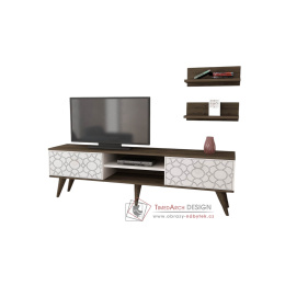 Sestava obsahuje televizní stolek a dvě nástěnné police, které poskytují dostatek úložného prostoru. Minimalistické plastové úchytky doplňují moderní vzhled stěny. Plastové nožičky zajišťují stabilitu a ochranu podlahy před poškozením.