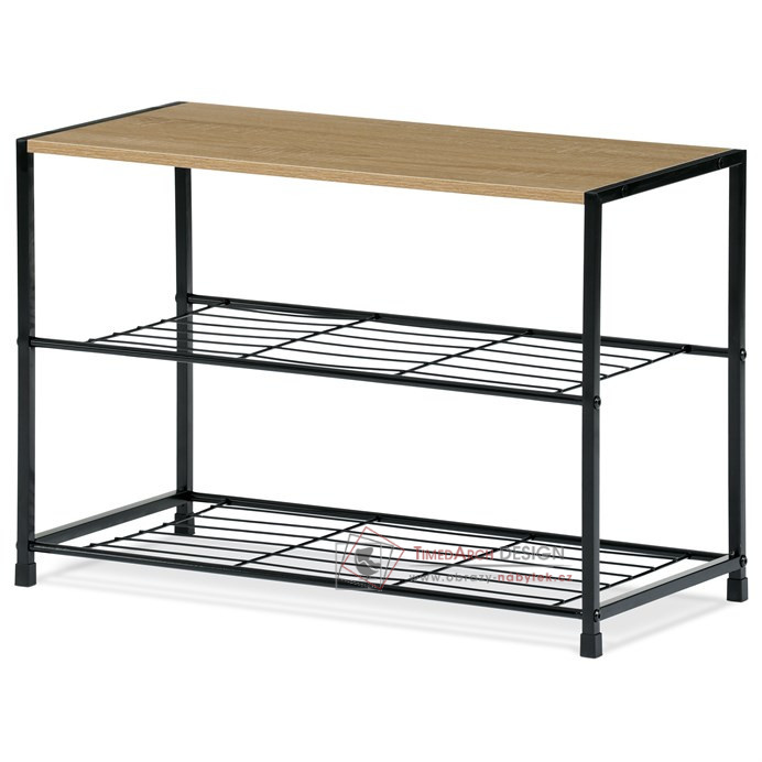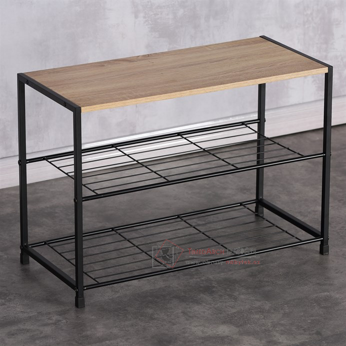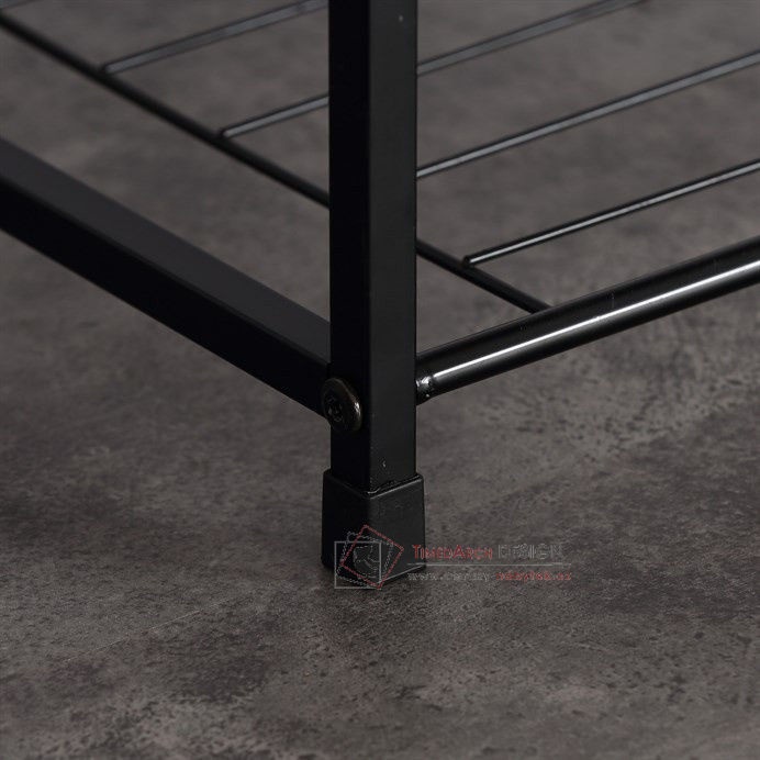 Botník s konstrukcí a odkládacími plochami z lehkého kovu v černé barvě.