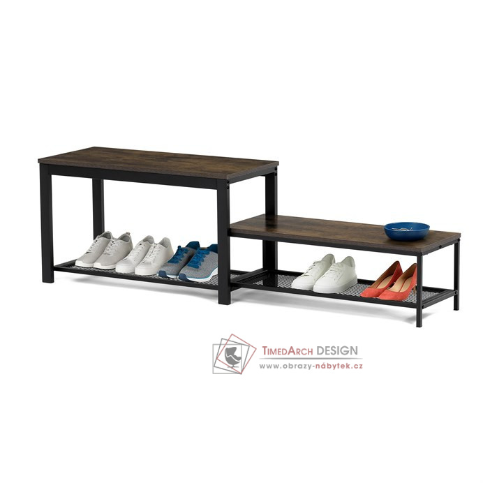 Díky kombinaci kovového rámu a dřevěných desek nabízí dostatek úložného prostoru pro vaše boty, zatímco pevná konstrukce zajišťuje stabilitu. Díky svému jednoduchému, ale funkčnímu designu se skvěle hodí do moderně zařízených interiérů.