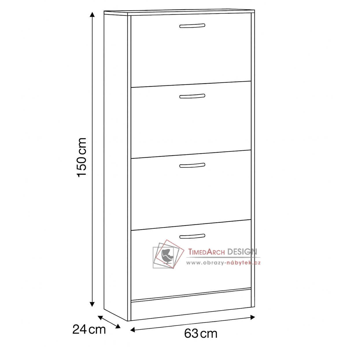 Botník s třemi přihrádkami v čistě bílém provedení je vyroben z MDF desek, které zajišťují pevnost a stabilitu.
