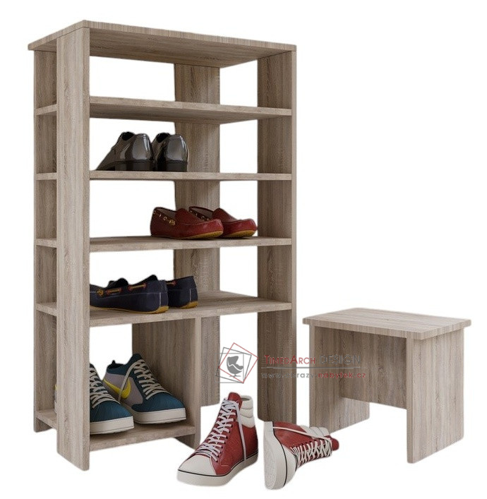 Policový botník se stoličkou BRADLEY je vyrobený z laminované DTD v barevném provedení dub artisan / bílá.