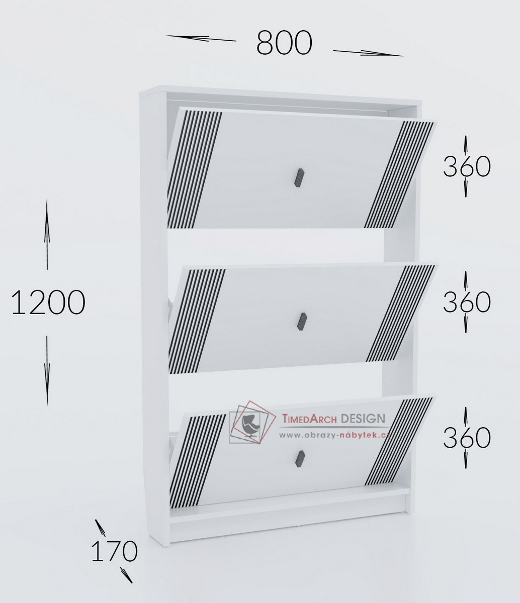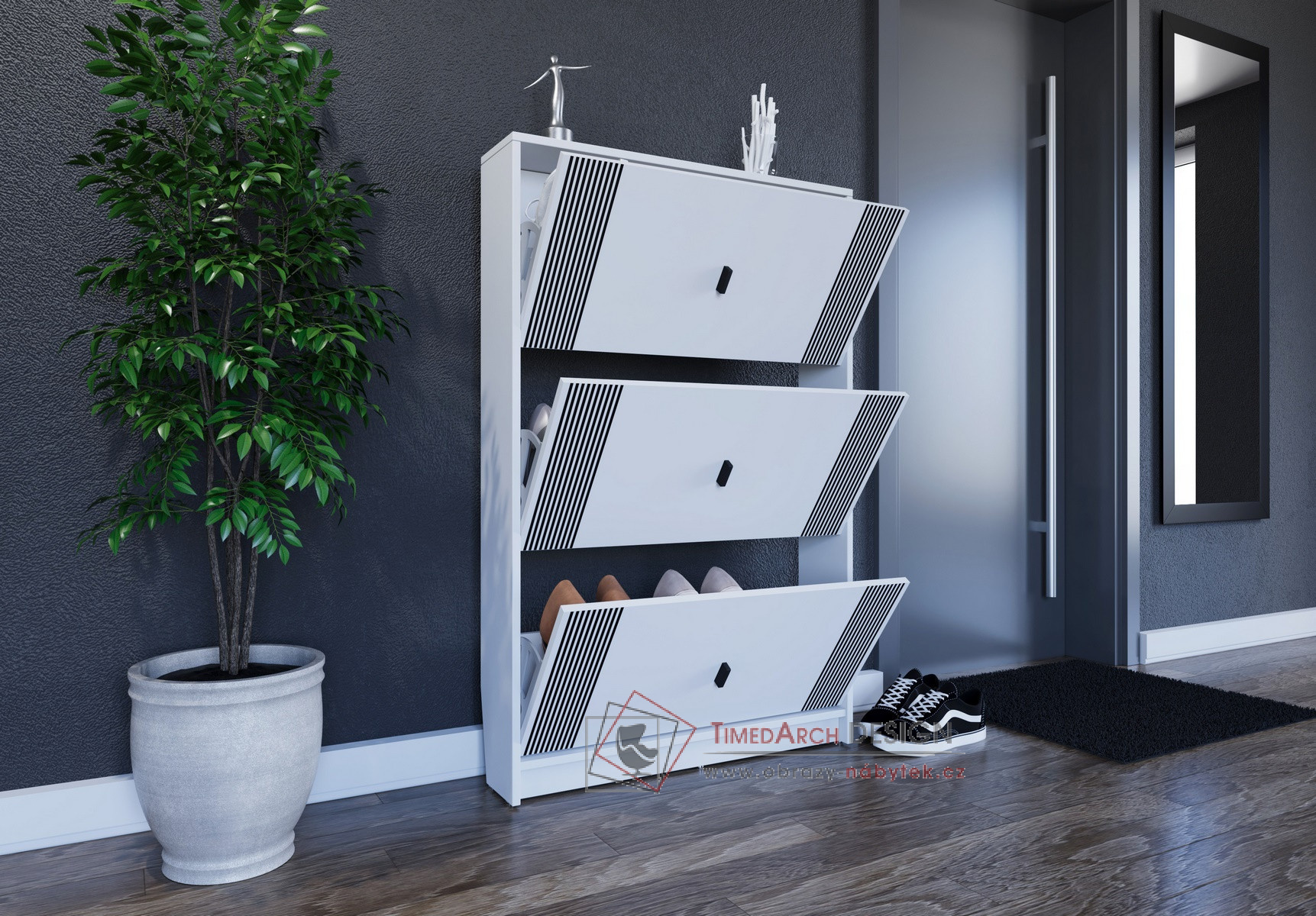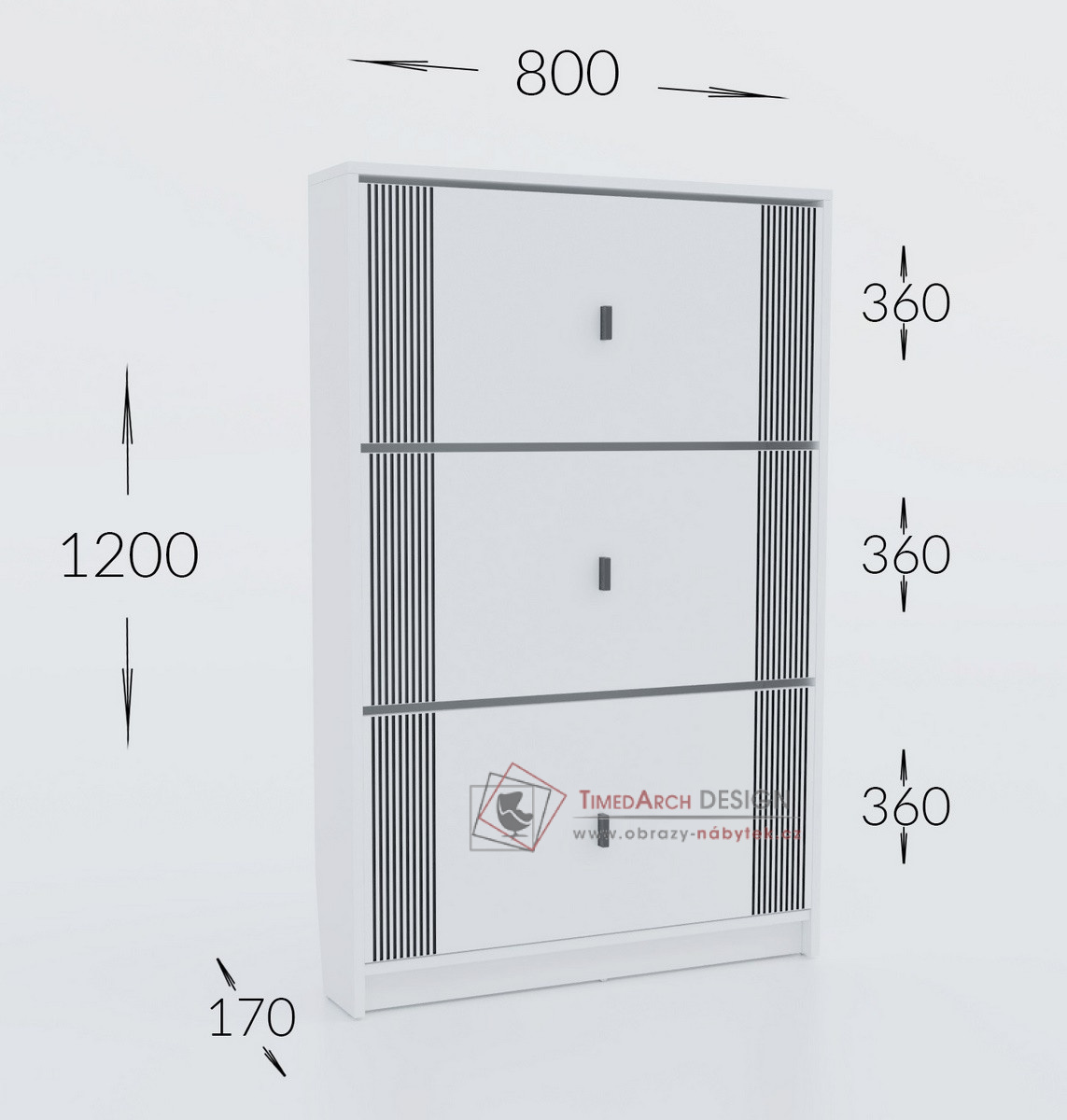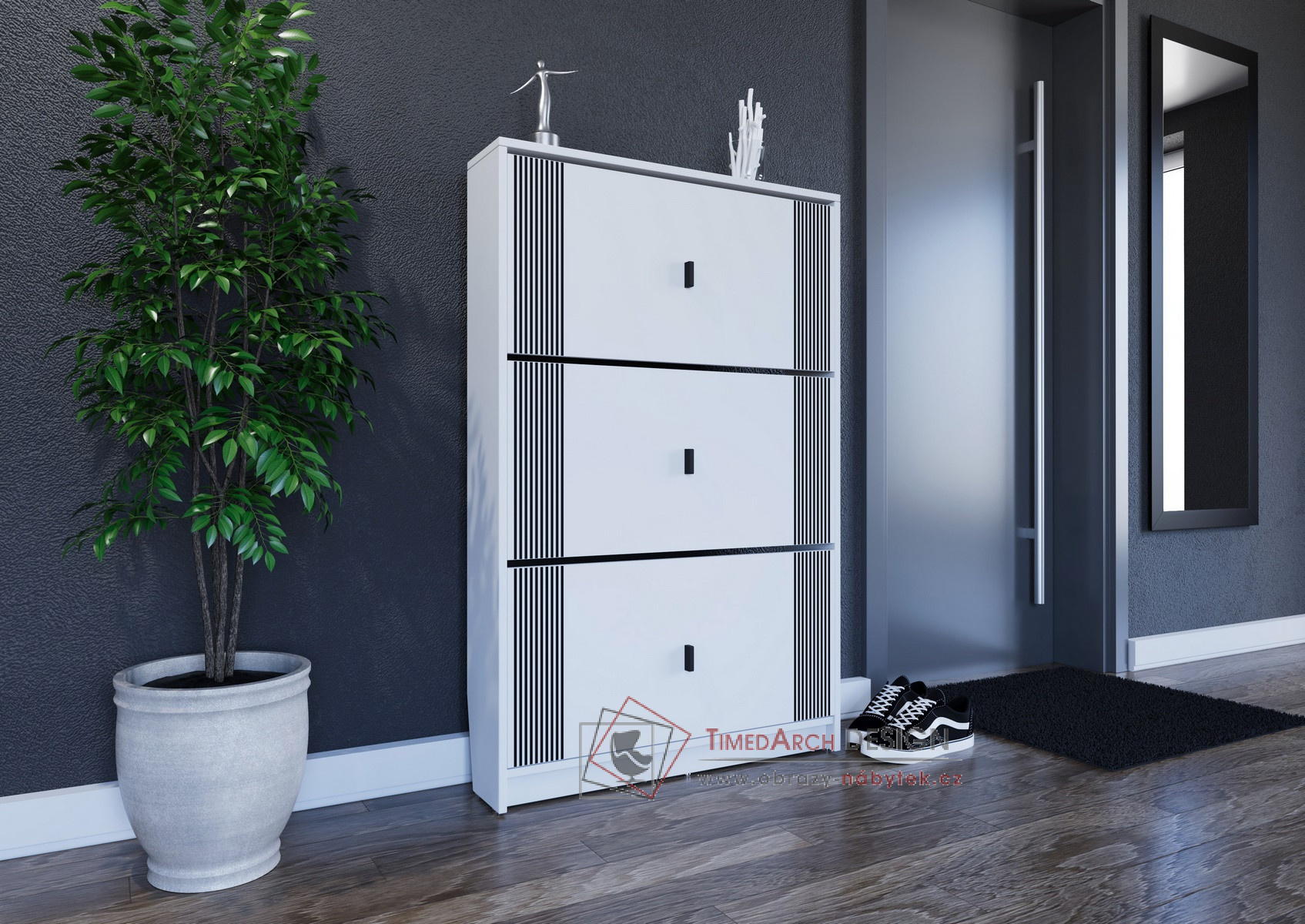 Třídveřový výklopný botník LITE 1 je vyrobený z laminované DTD v kombinaci barevného provedení bílá a šedá.