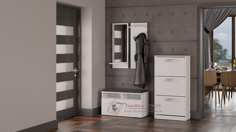 Pečlivé zpracování a minimalistický design dodají vaší předsíni styl i funkční úložný prostor. Nábytek je vyroben z vysoce kvalitního lamina, které je snadno udržovatelné a odolné proti oděru, dlouhou životnost nábytku zajišťují hrany zakončené ABS materiálem.