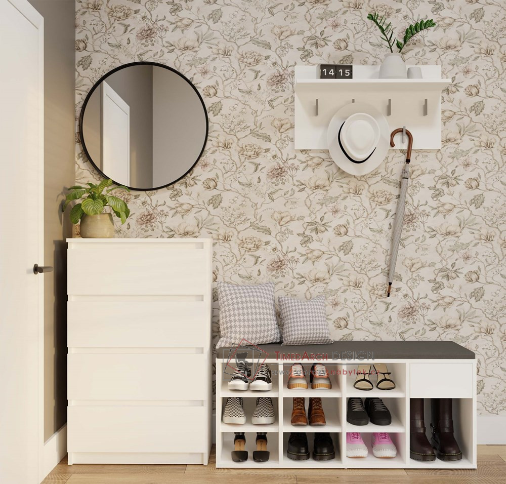 Nadčasový botník Tazin představuje praktické a stylové řešení pro každou předsíň – nabízí pohodlné sezení a zároveň dostatek úložného prostoru pro vaše boty i drobnosti.