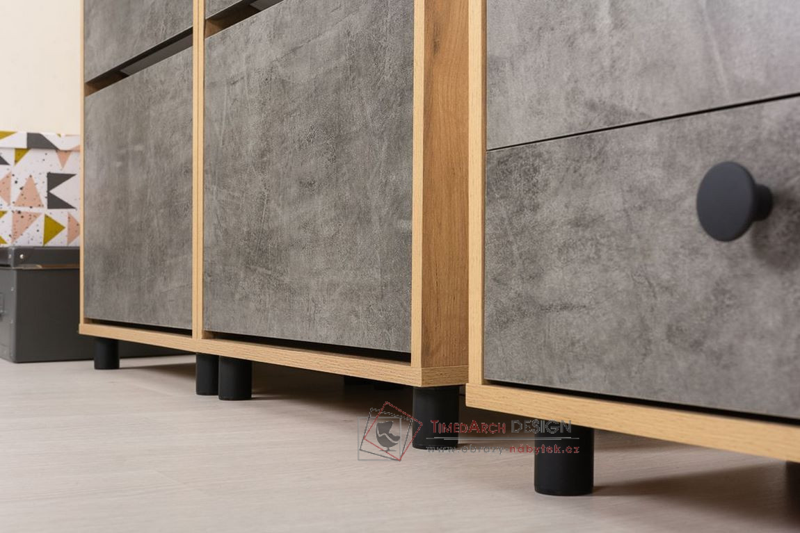 Nožky jsou v černé barvy stejně jako i kovové úchytky.