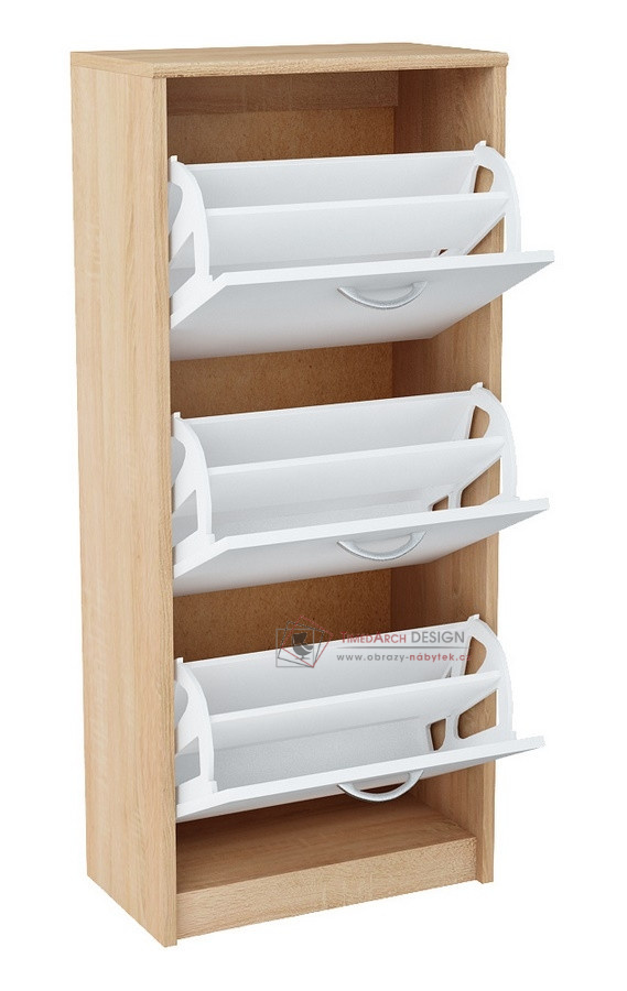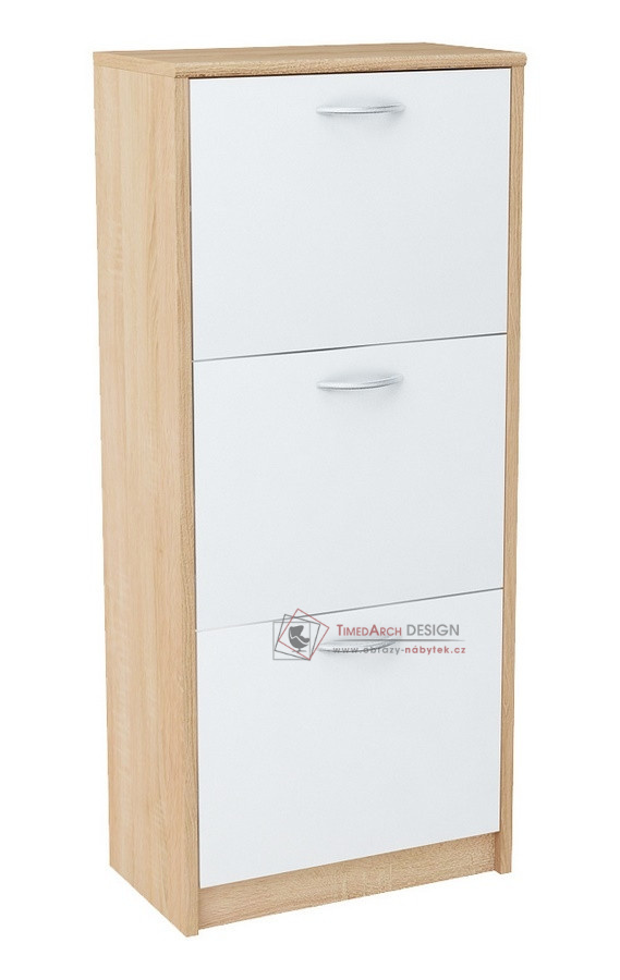 Čtyřdveřový výklopný botník VIVA 4K je vyrobený z laminované DTD v kombinaci barevného provedení dub sonoma / bílá.