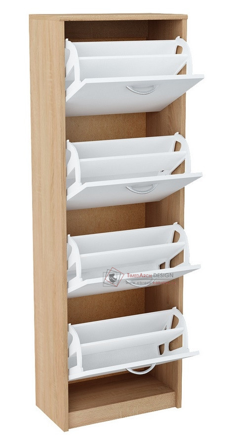 Třídveřový výklopný botník VIVA 3K je vyrobený z laminované DTD v kombinaci barevného provedení dub sonoma / bílá.