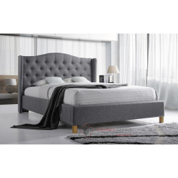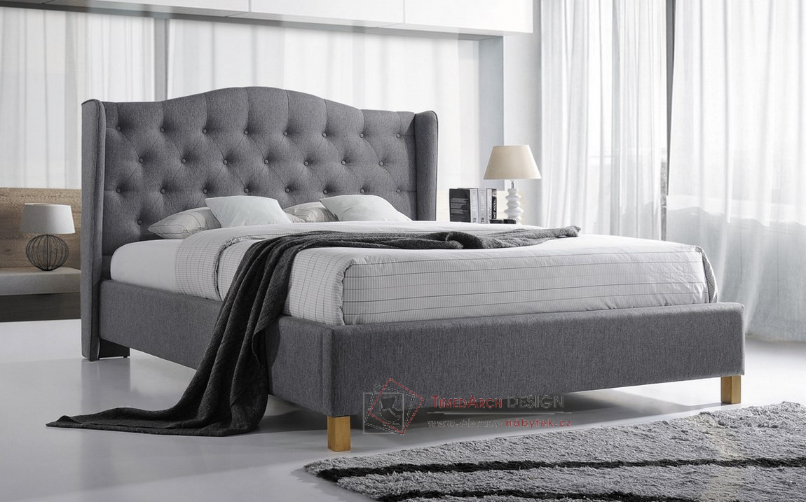 Čalouněná postel s prošítím čela 160x200 cm ASPEN je očalouněná látkou šedé barvy.