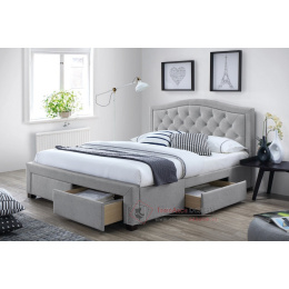Postel je očalouněná látkou látkou šedé barvy. Dřevěné nožky postele o výšce 5 cm v barevném provedení přírodní dub. Úložný rostor vytváří zásuvky pod postelovým roštem.