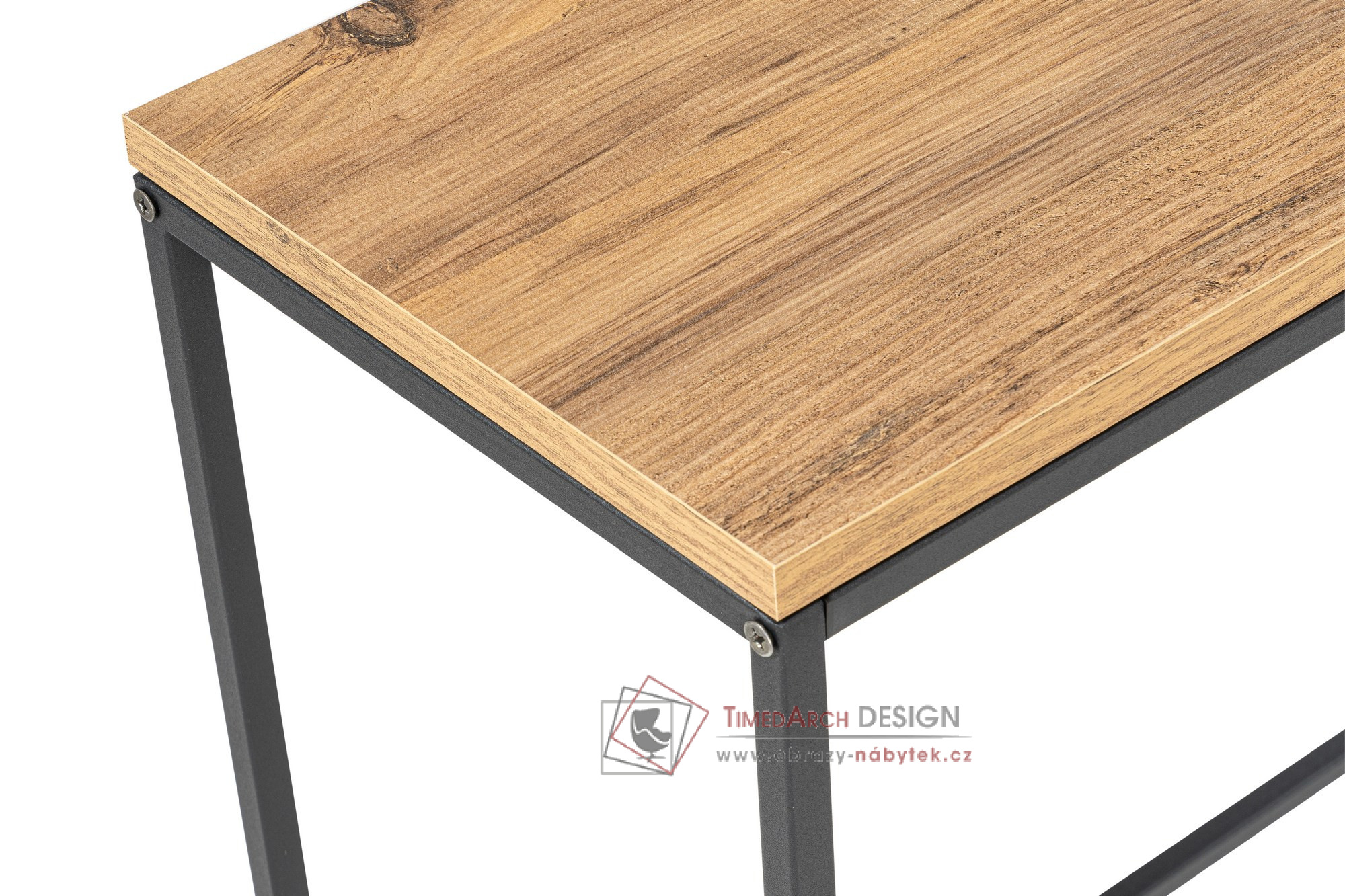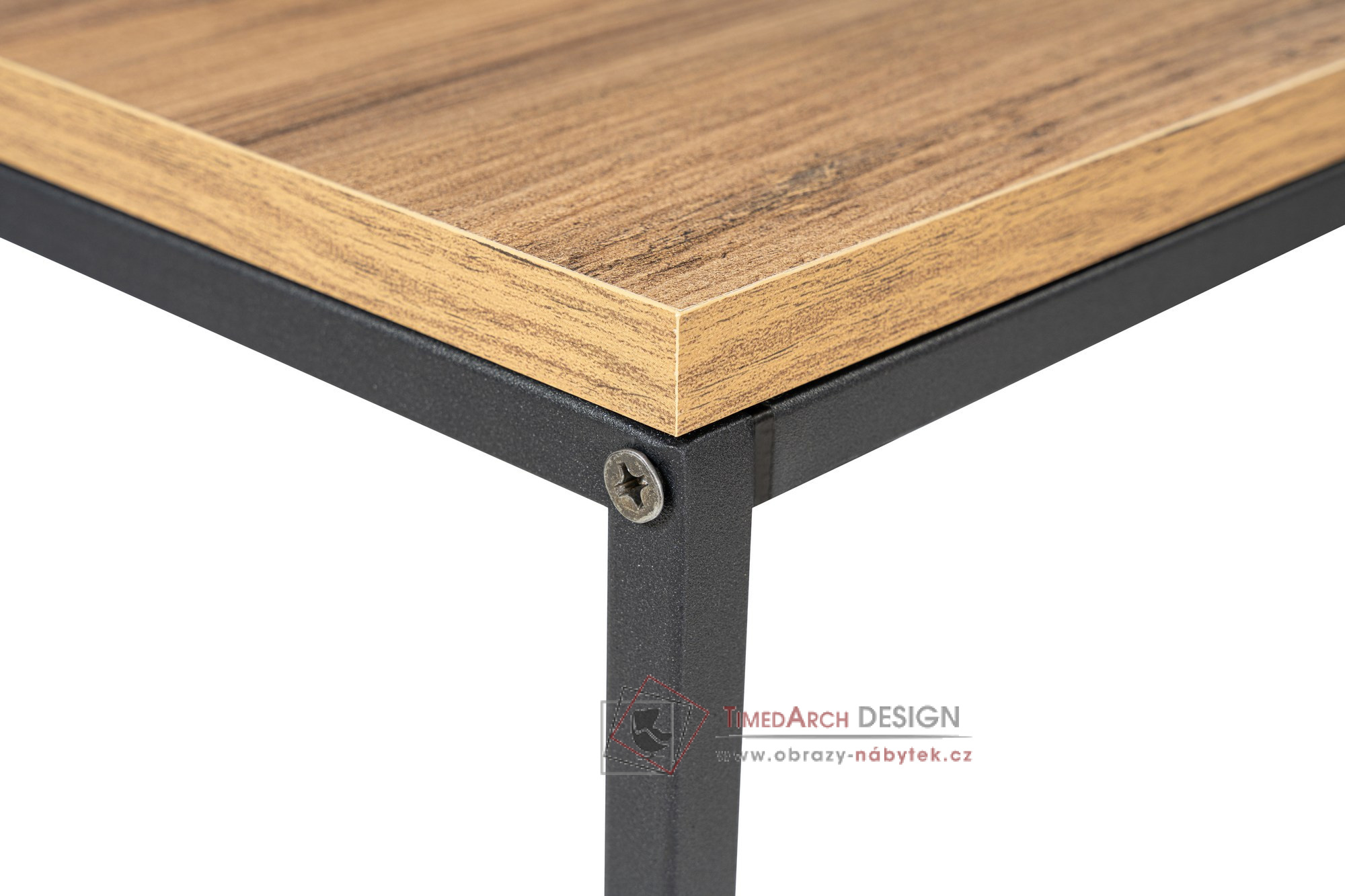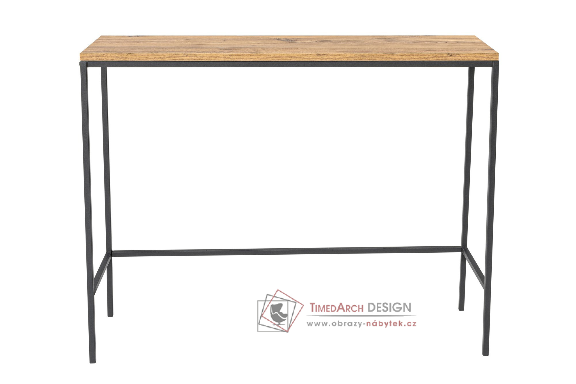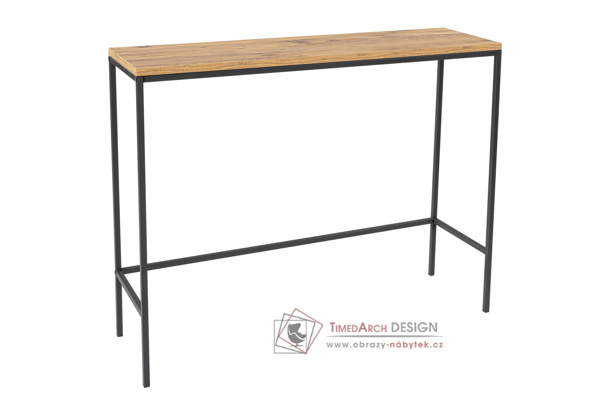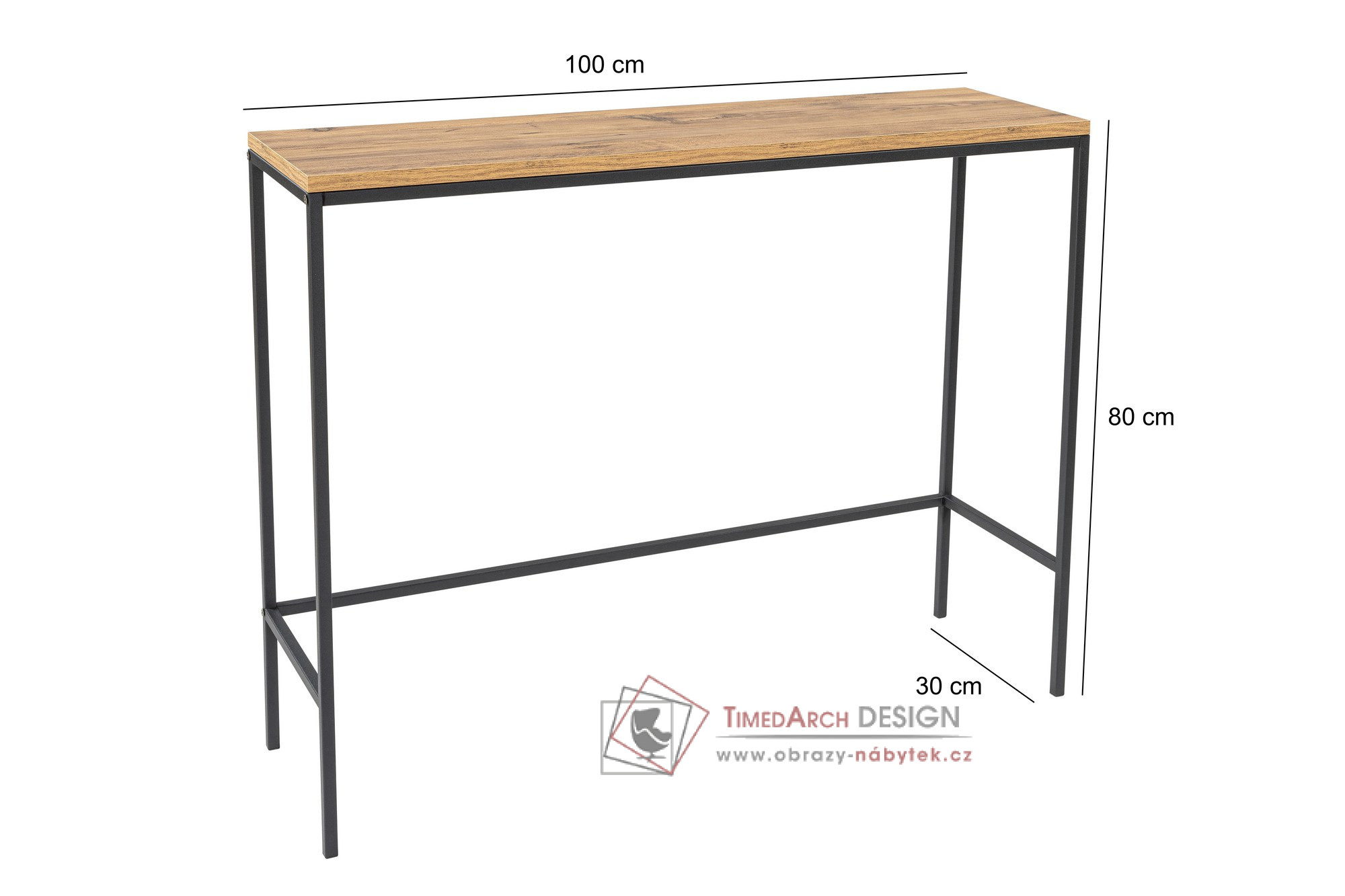 konzole je v nadčasové černé barvě a dubu, která dodá vašemu prostoru nádech elegance a sofistikovanosti. Ať už máte moderní nebo tradiční interiér, tento všestranný kus nábytku se bez problémů začlení do vašeho interiéru a vylepší jeho celkovou estetiku.