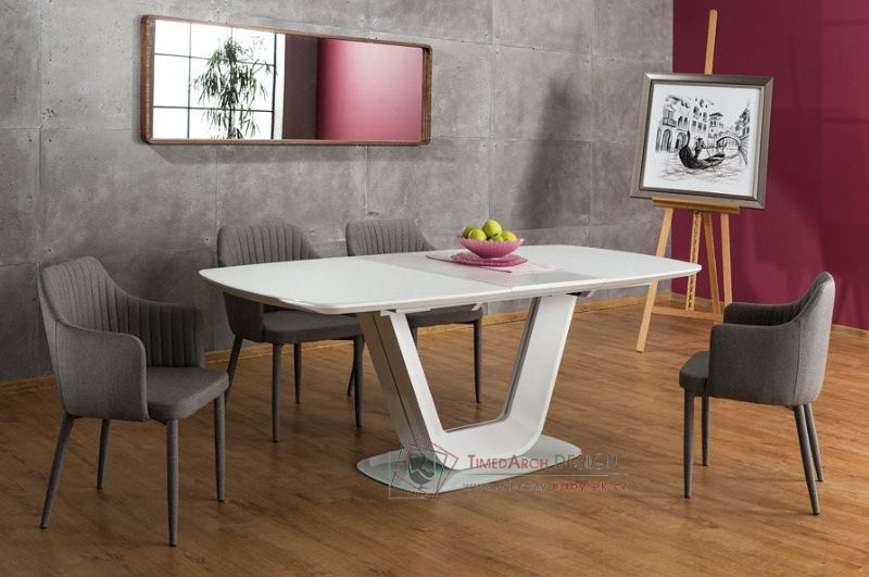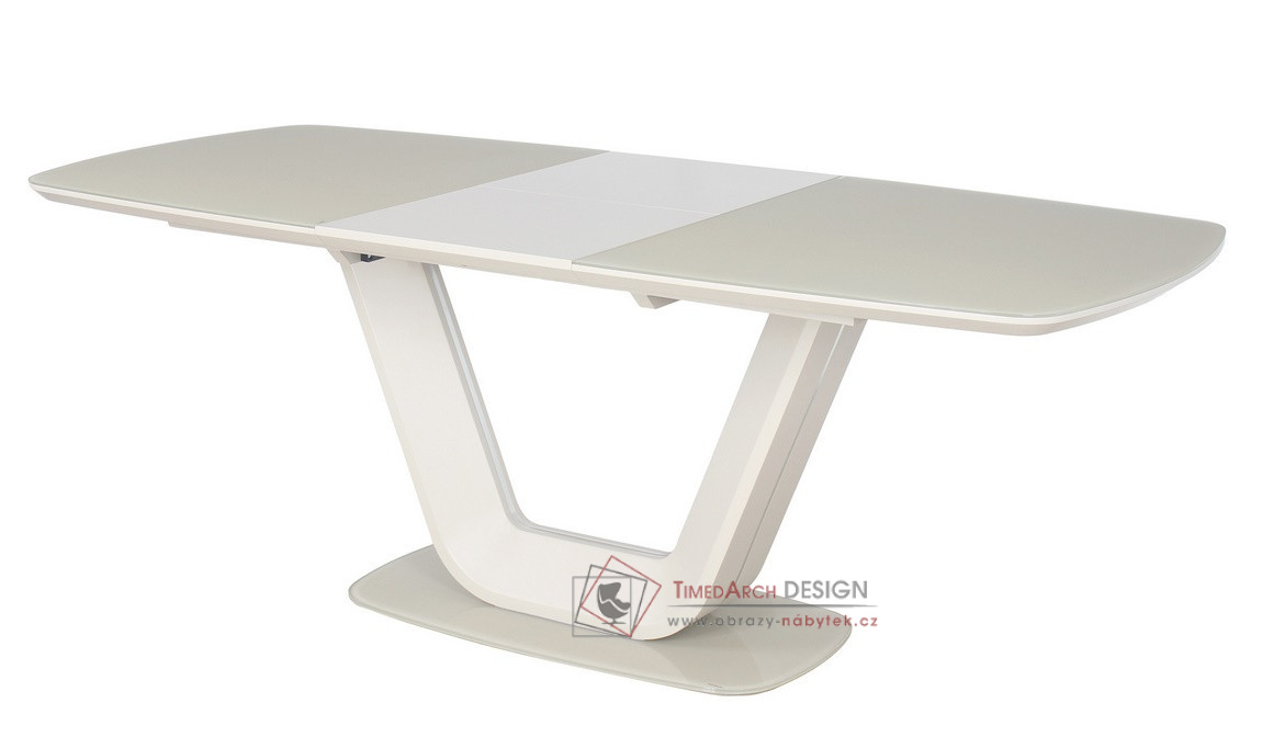 Podnož stolu je vyrobena z kvalitní MDF lakované krémovou barvou odolnou proti oděru. Stolní deska je vyrovená z MDF a z tvrzeného krémového skla.
