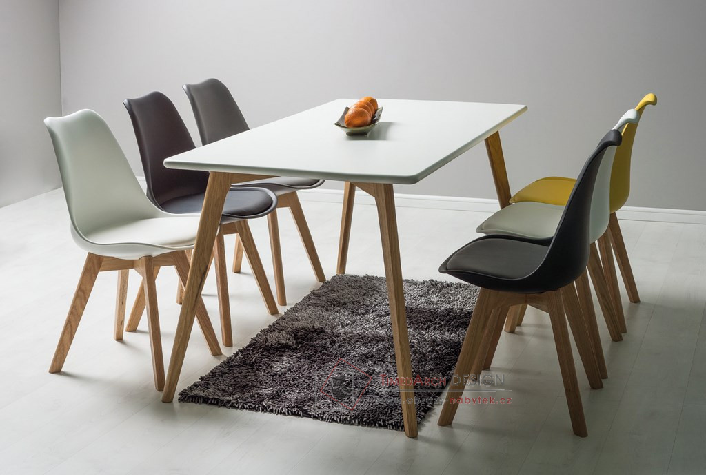 Jídelní židle KRIS na dřevěné podnoži v barvě dub.