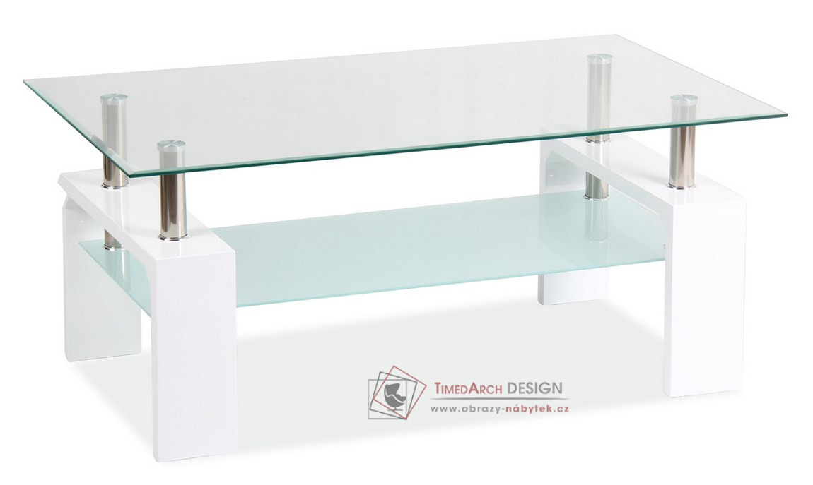 Konferenční stolek LISA BASIC II na podnoži vyrobené z MDF v provedení bílý lak v kombinaci s pochromovaným kovem.