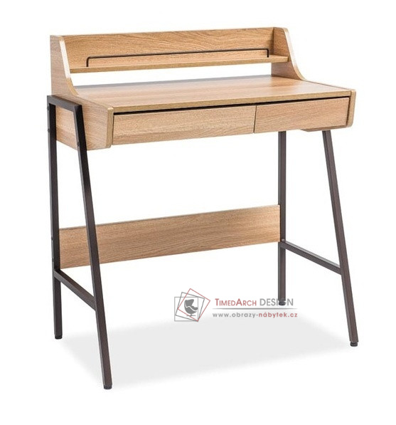 Jednoduchý, ale praktický pracovní stůl se 2-mi zásuvkami a nádstavcem s poličkou B-168.