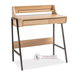 Podnož stolu je kovová, černé barvy. Stolní deska je vyrobená z dýhované MDF v barevném provedení dub. Vhodný i pro menší pokoje.