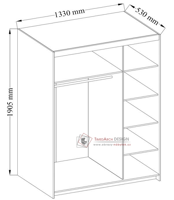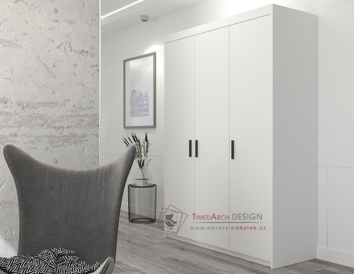 Třidvéřová šatní skříň ELINA je vyrobená z laminované DTD bílé barvy.