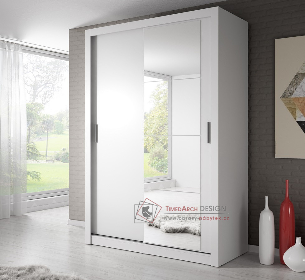 Šatní skříň dvoudveřová s posuvnými dveřmi ARTI je vyrobená z laminované DTD bílé barvy.