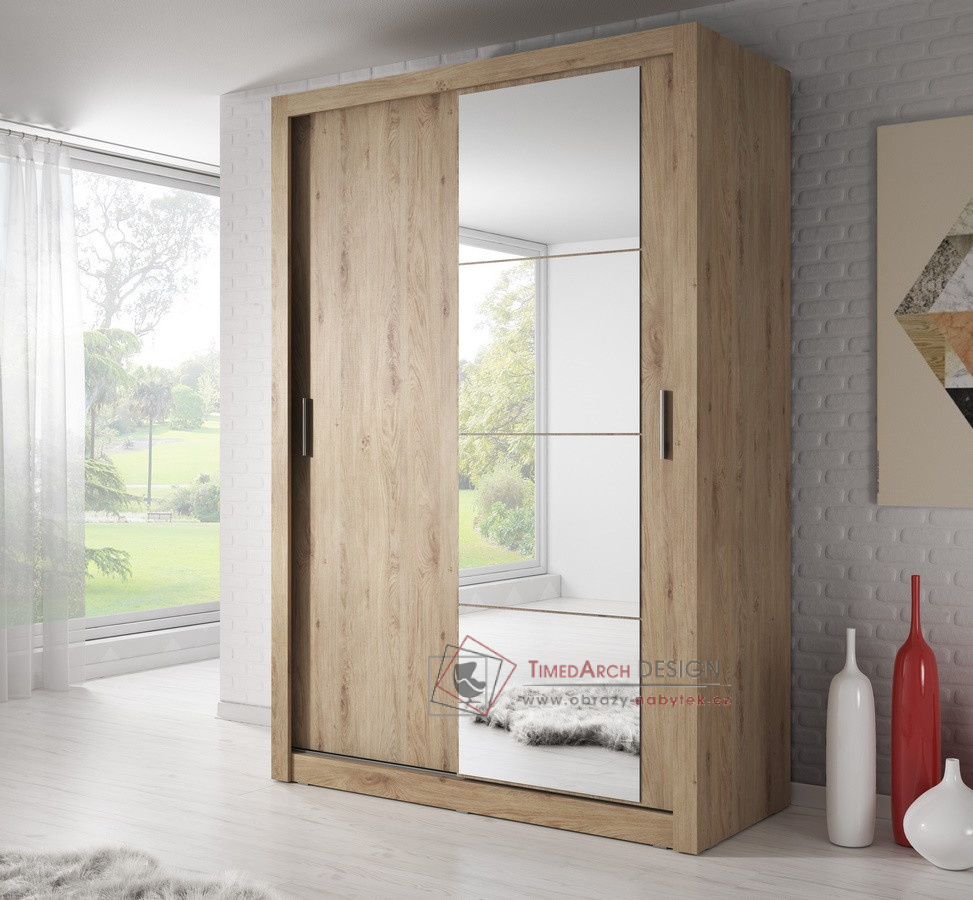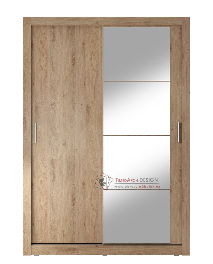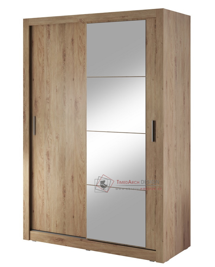 Šatní skříň dvoudveřová s posuvnými dveřmi ARTI je vyrobená z laminované DTD barvy dub shetland.