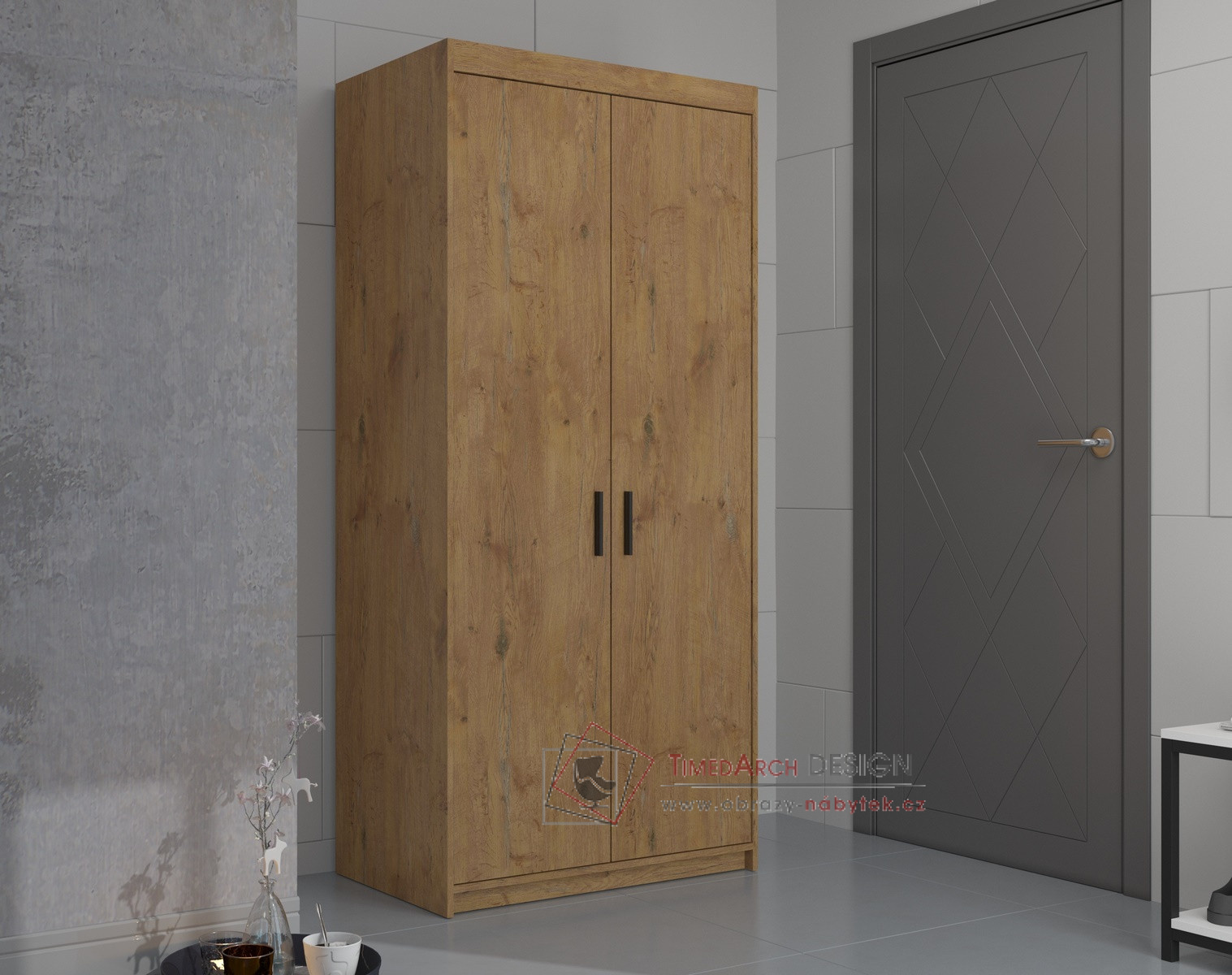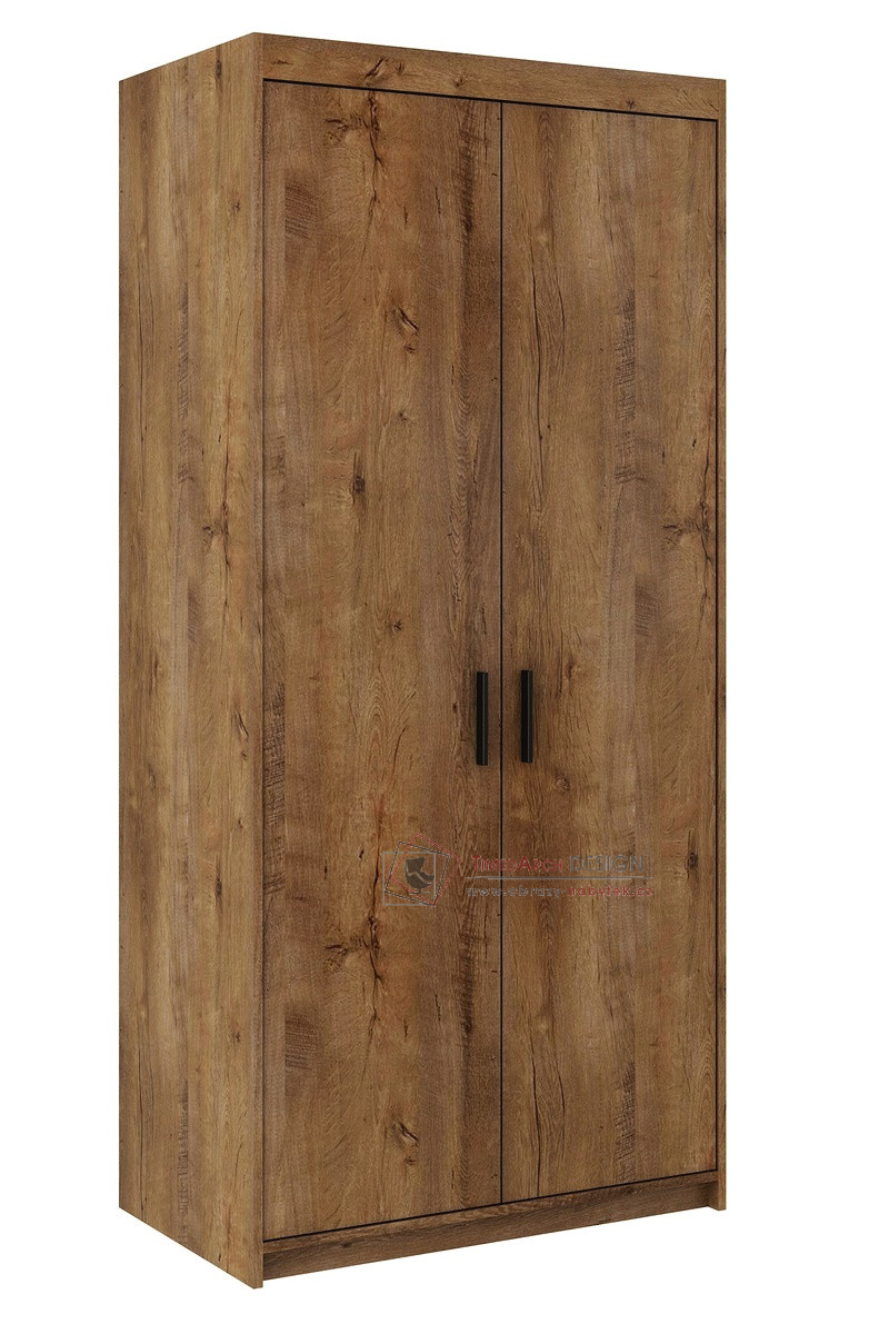 Dvoudvéřová šatní skříň ELINA je vyrobená z laminované DTD v barevném provedení dub lefkas.