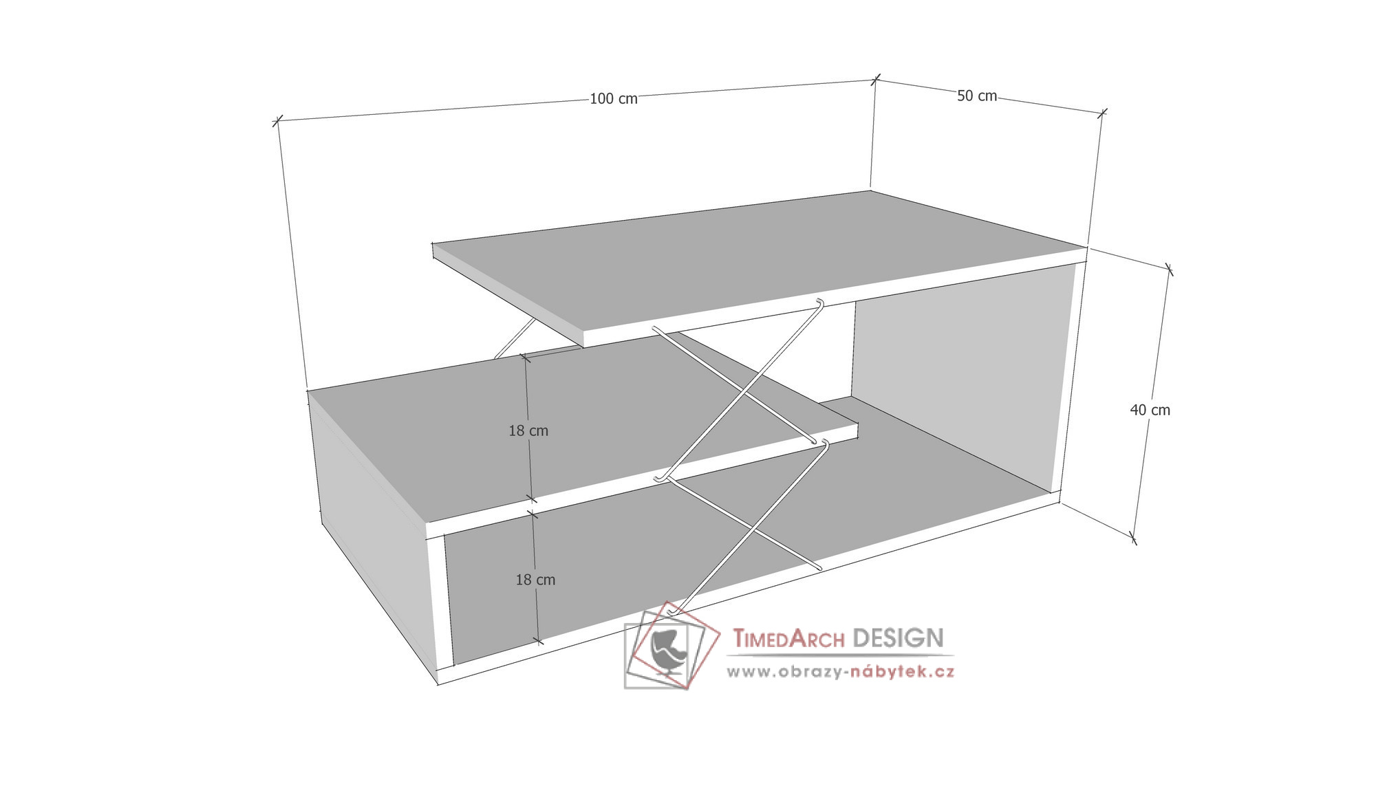 Díky svému elegantnímu a modernímu designu tento konferenční stolek bez námahy kombinuje styl s funkčností. Velkorá deska stolu poskytuje dostatek prostoru pro vaše oblíbené knihy, časopisy nebo dekorativní předměty, zatímco spodní police nabízí pohodlné úložné řešení pro vaše nezbytnosti. Jeho perfektní rozměry 100 cm na šířku, 40 cm na výšku a 50 cm na hloubku z něj činí ideální volbu pro každou místnost.