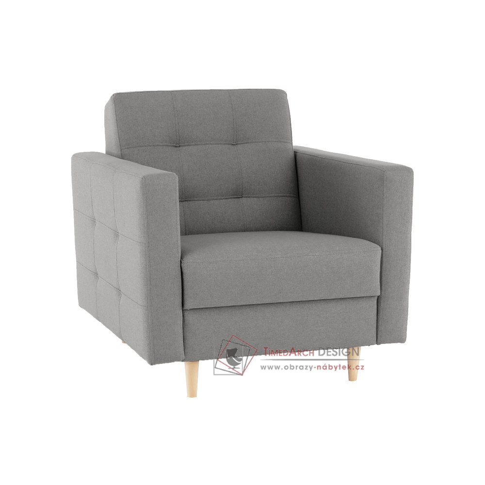 Křeslo AMEDIA v elegantní tmavě šedé barvě je vyrobeno z kvalitní látky Norn a stojí na pevných dřevěných nožkách.