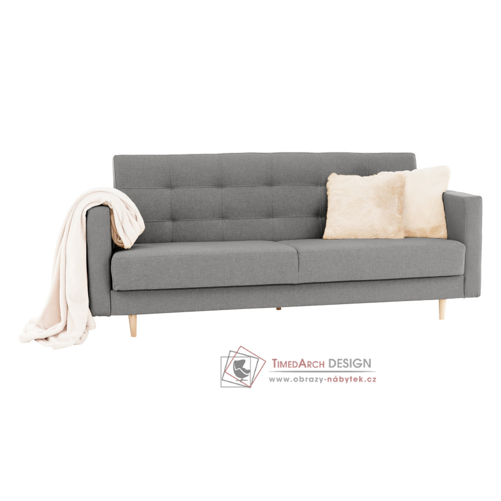 3-sed je vyroben z látky NORN v šedé barvě. Dekorativní prošití opěradla a vnějších stran područek dodává sestavě šmrnc. V případě nečekané návštěvy vám sedačka nabízí plochu na spaní v rozměru 124x180 cm . Součástí pohovky je i praktický úložný prostor. Dopřejte si i vy tento jedinečný kousek a ohromte tím nejednu vaši návštěvu.