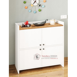 Praktická víceúčelová skříňka se 4-mi dveřmi a 4-mi policemi v barevném provedení bílá / borovice.