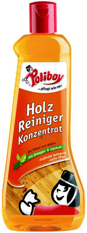 Koncentrát - čistič na dřevěný nábytek značkového německého výrobce Poliboy, který si zakládá na kvalitě surovin, vysoký podíl přírodních látek, biologickou odbouratelnost výrobků a nepoužívání složek škodlivých lidskému zdraví a životnímu prostředí. Tento trojnásobný koncentrát je vhodný na všechny druhy omyvatelného dřeva, tmavé i světlé, na nábytek, podlahy, schody, dveře, obložení, dřevěné lišty a parapety. Kromě toho, že je silný proti špíně, tak díky pomerančového a jojobového oleje zároveň ošetřuje a chrání. Vystačí na 80 l vody a pH neutrální receptura zabraňuje vyluhování dřeva. V balení je 500 ml.