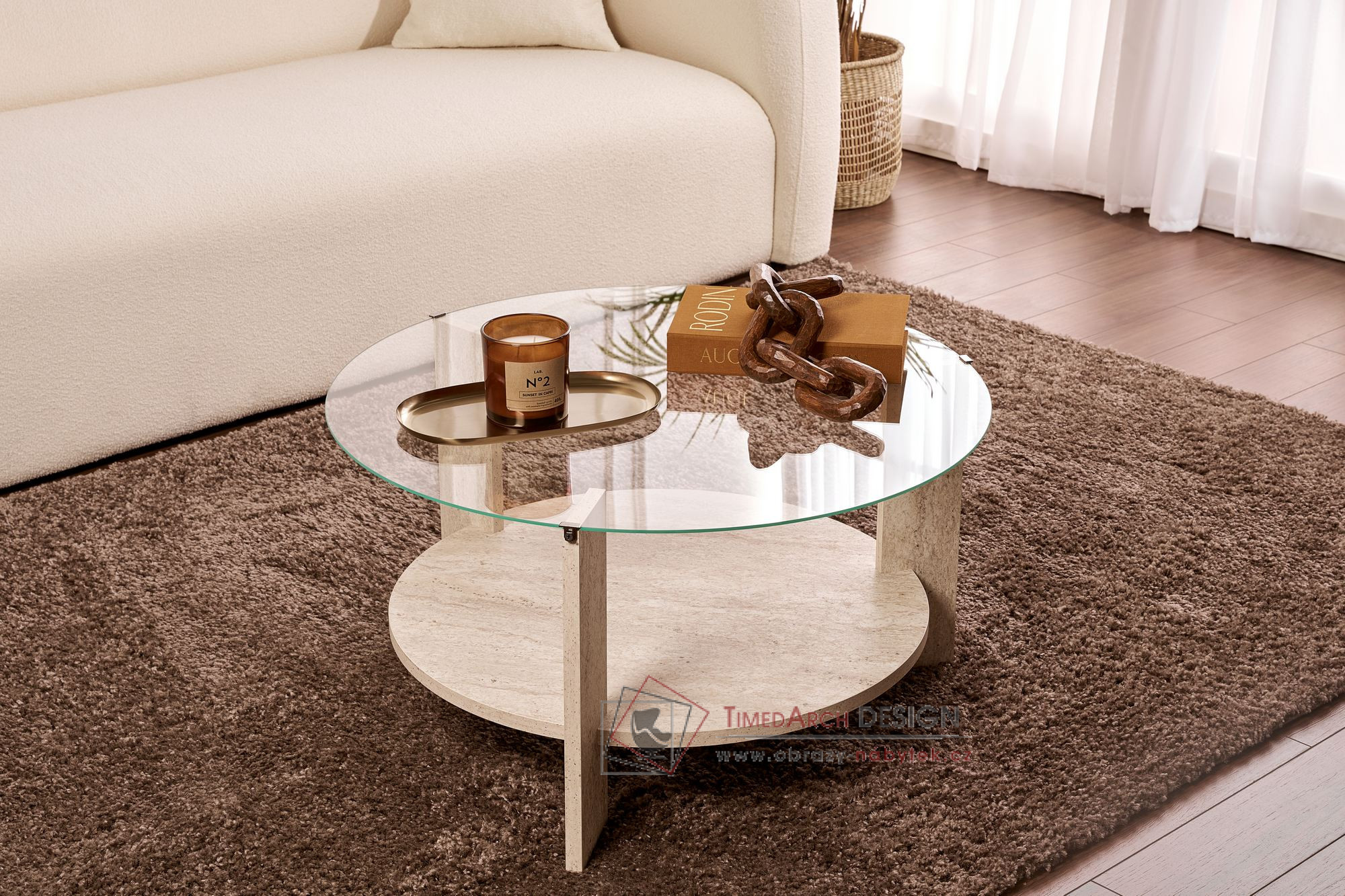 Kombinace travertine / čiré sklo dodá každé místnosti nádech elegance a stane se tak perfektním ústředním bodem vašeho domova.