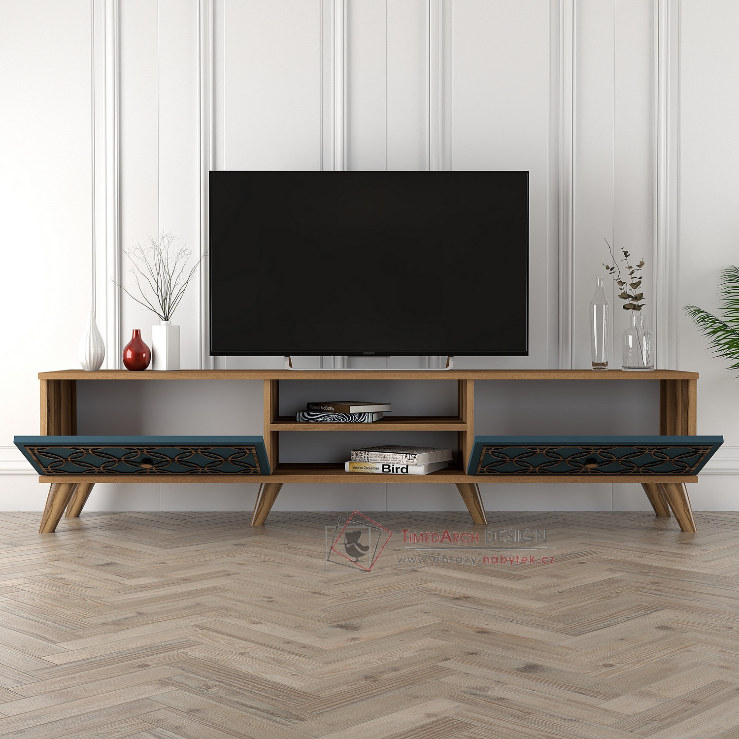 TV stolek je navržen v krásné kombinaci barev ořechu a chalcedonu, což vytváří vizuálně přitažlivý a stylový vzhled. Moderní a originální koncept spolu s damaškovými a květinovými vzory dodá vašemu obývacímu pokoji nádech jedinečnosti a sofistikovanosti.