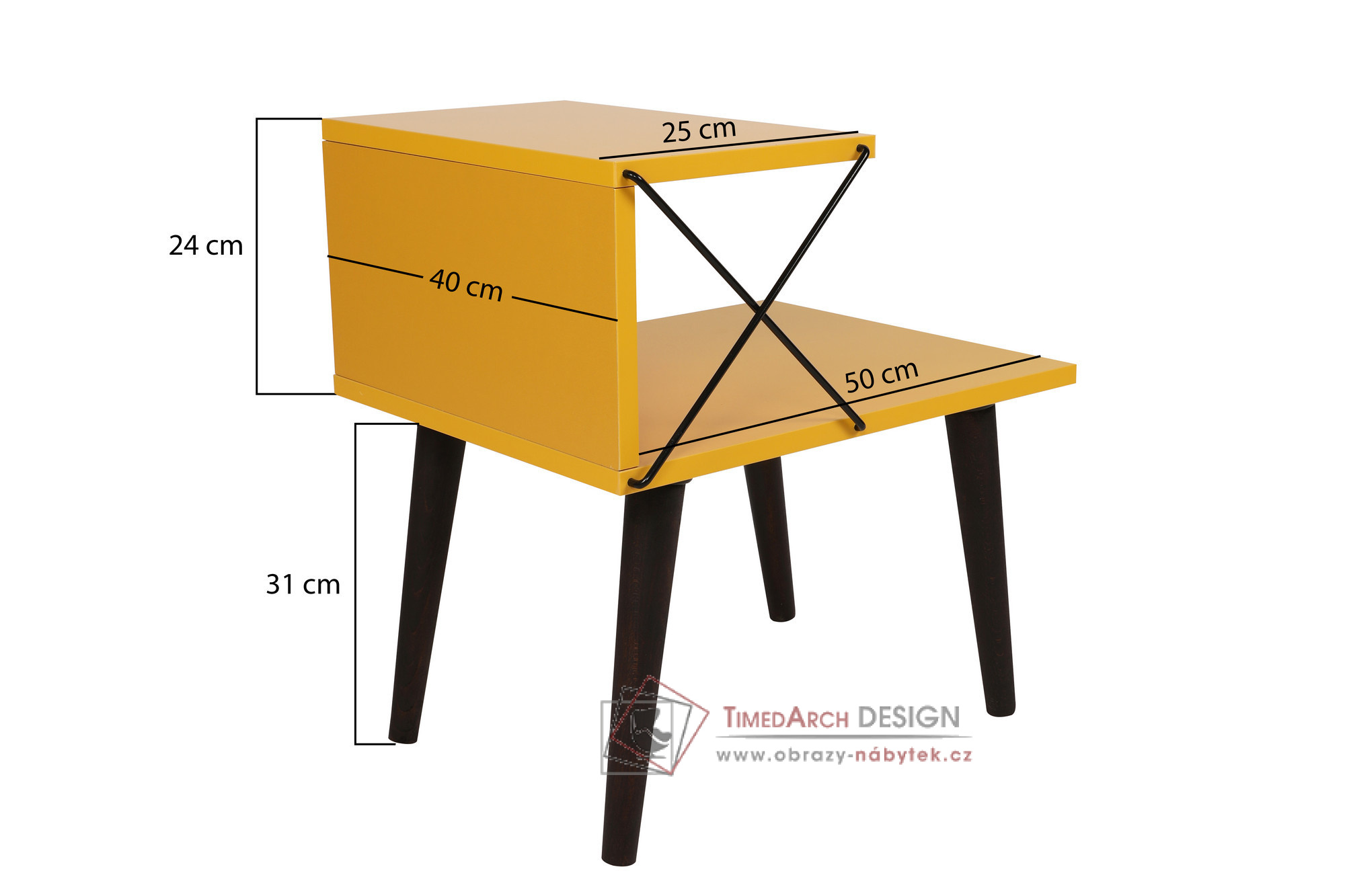 S mnoha policemi nabízí tento noční stolek dostatek úložného prostoru pro uložení vašich nezbytností uspořádaných a na dosah ruky. Spodní police o délce 50 cm poskytuje dostatek prostoru pro větší předměty, zatímco horní police o délce 25 cm je ideální pro menší předměty nebo dekorativní kousky.