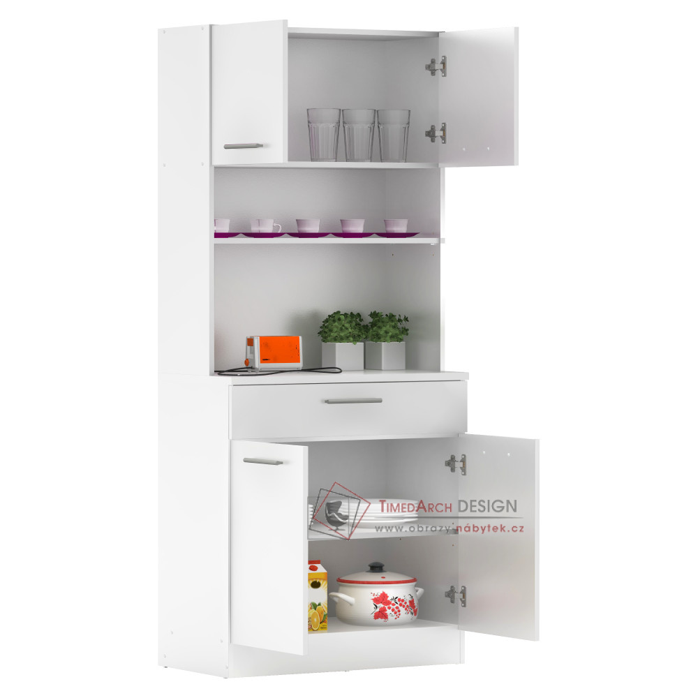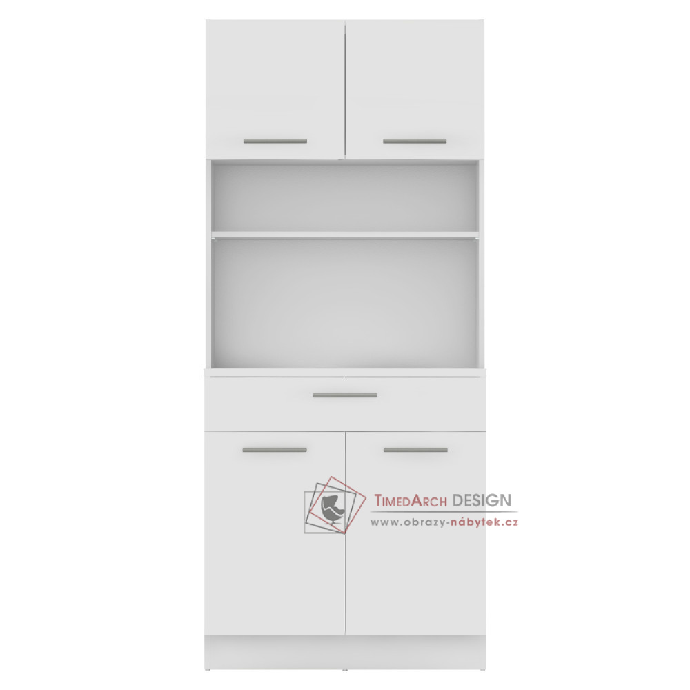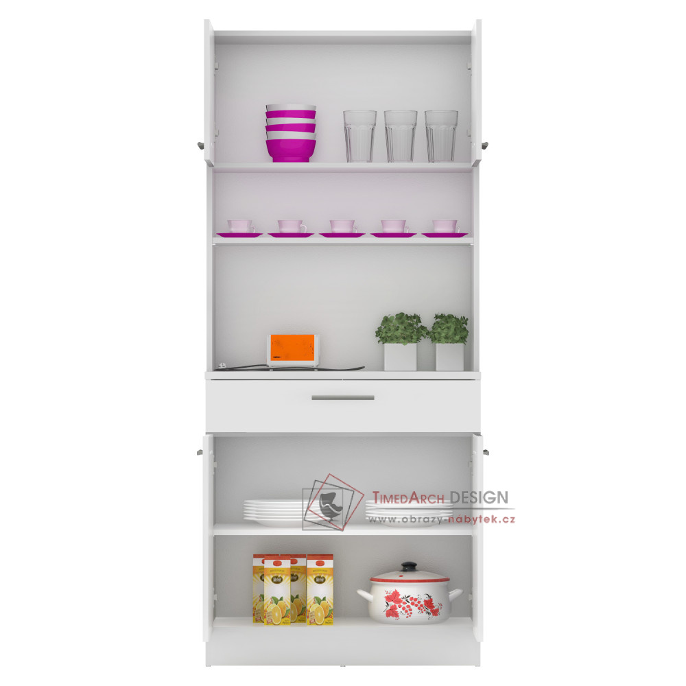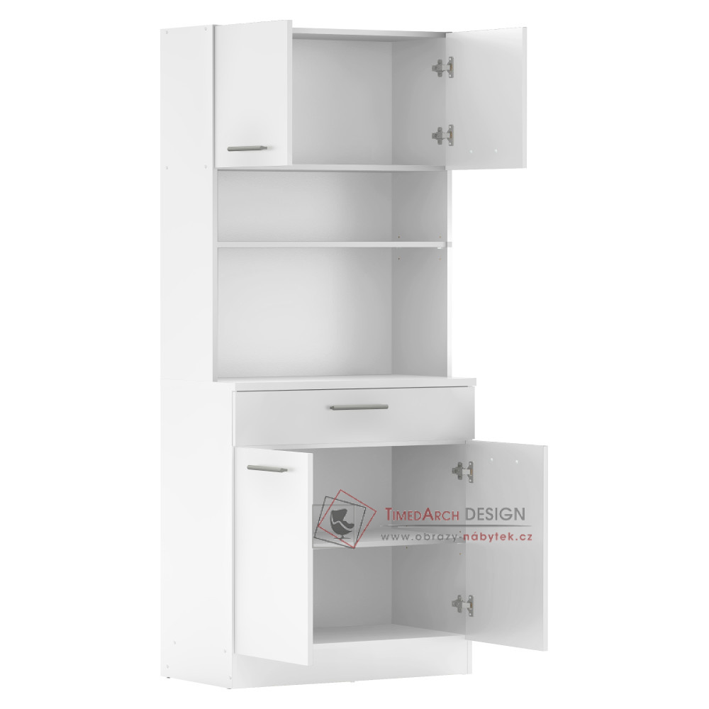 Materiál: laminovaná DTD Barva: bílá Rozměry (ŠxHxV): 80x43,3x185 cm Tloušťka materiálu: 1,6 cm Tloušťka vrchního plátu spodní skříňky: 2,2 cm Čtyřdveřový Policový Nosnost police: 5 kg 1 zásuvka Rozměry zásuvky (ŠxV): 79,4x15 cm Nosnost zásuvky: 5 kg S úchytkami Materiál úchytek: PVC Barva úchytek: stříbrná Na kluzácích Praktický Víceúčelový Kvalitní slovenský výrobek Doporučujeme připevnit ke zdi Dodáváno v demontu