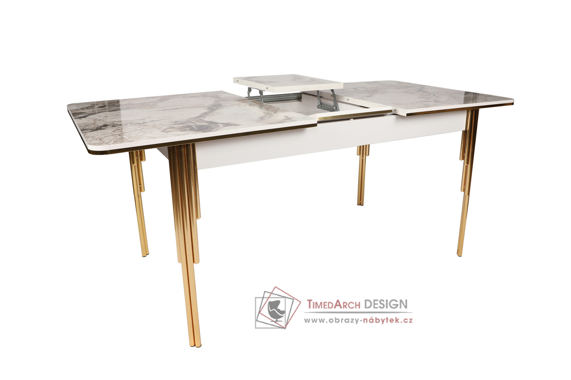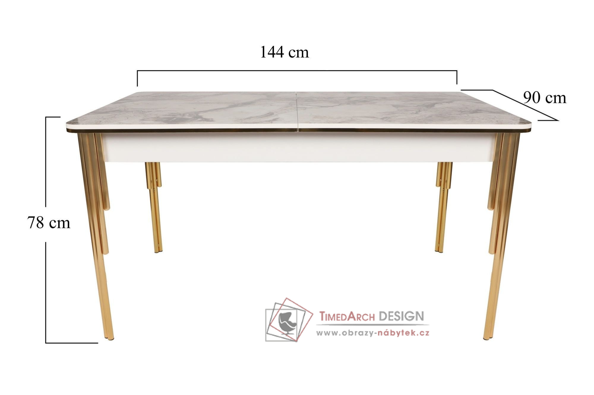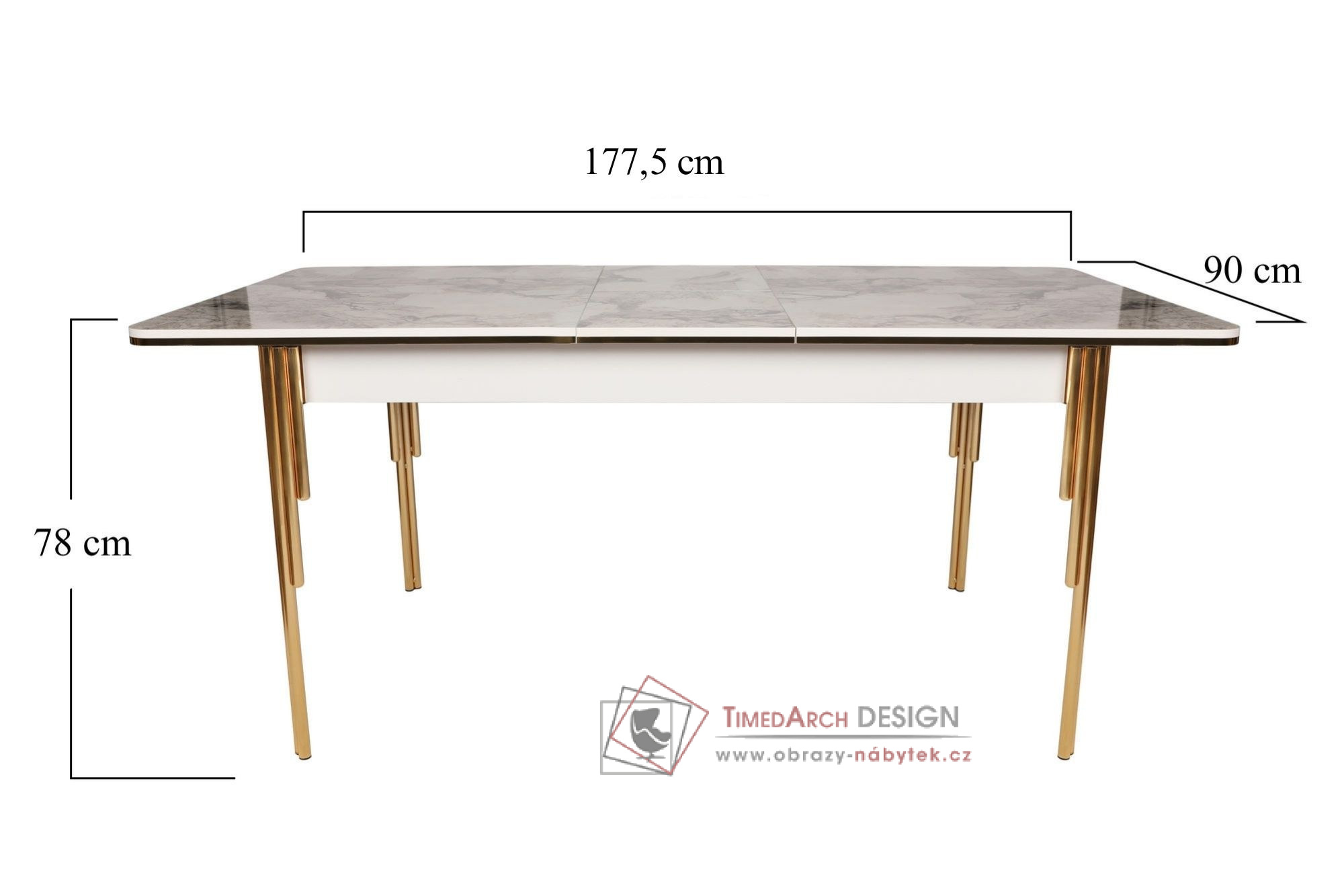 Díky kompaktním rozměrům šířky: 144 cm, výšky: 78 cm a hloubky: 90 cm je tento stůl ideální do menších jídelních prostor. Po rozložení se však bez námahy roztáhne na šířku 177,5 cm, což umožňuje větší setkání a vytváří příjemnou atmosféru pro vaše blízké.