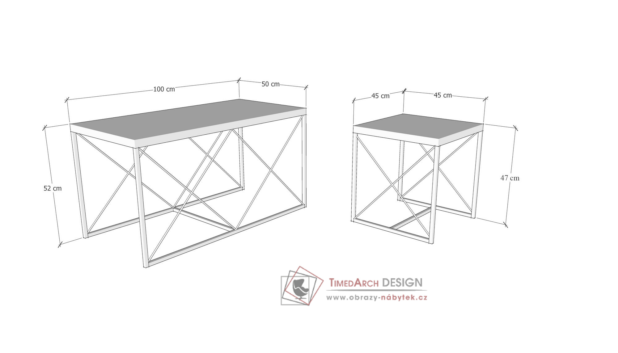Větší konferenční stolek měří 100 cm na šířku, 52 cm na výšku a 50 cm do hloubky, což poskytuje dostatek prostoru pro vaše oblíbené knihy, časopisy a dekorativní předměty. Menší konferenční stolky o šířce 45 cm, výšce 52 cm a hloubce 45 cm lze umístit společně nebo samostatně, aby vyhovovaly vašim potřebám.