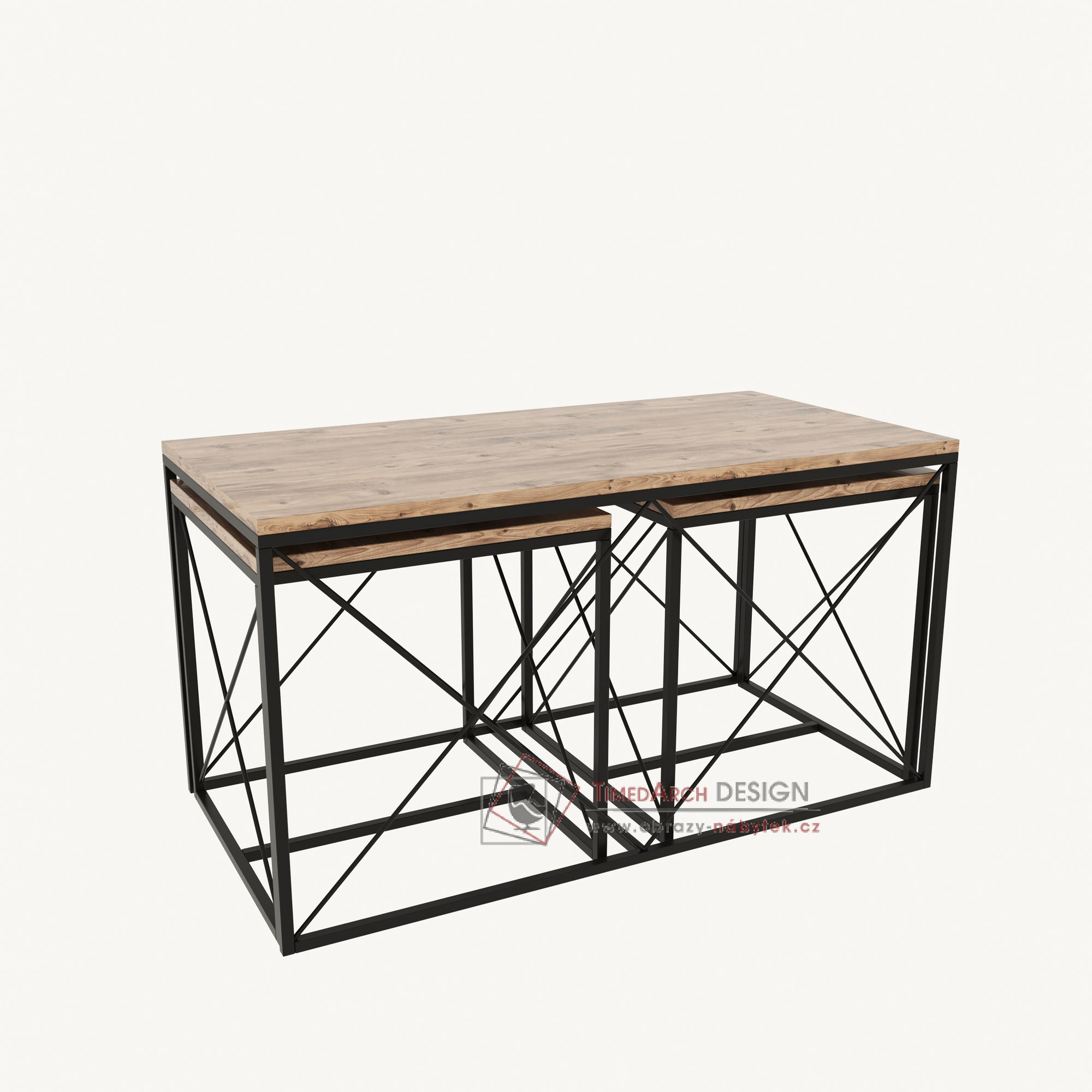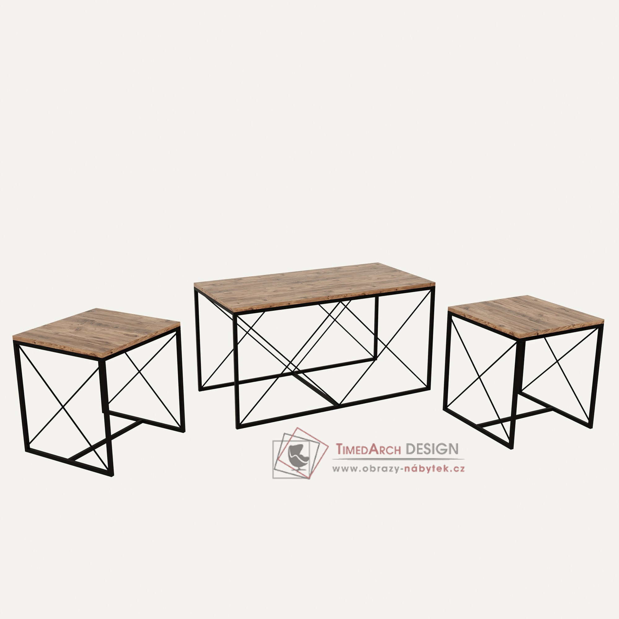 Sada konferenčních stolků se vyznačuje krásnou kombinací barev atlantické borovice a černé, která dodá vašemu obytnému prostoru nádech sofistikovanosti. Kontrastní barvy vytvářejí vizuálně přitažlivý vzhled, který okamžitě pozvedne styl každé místnosti.