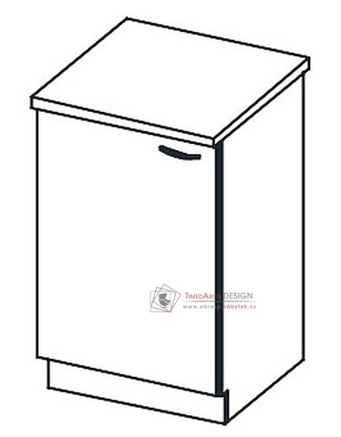 Dolní skříňka 1-dveřová D60 KARMEN je vyrobená z laminované DTD, dvířka z MDF.