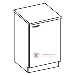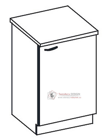 Dolní skříňka 1-dveřová D60 KARMEN je vyrobená z laminované DTD, dvířka z MDF.