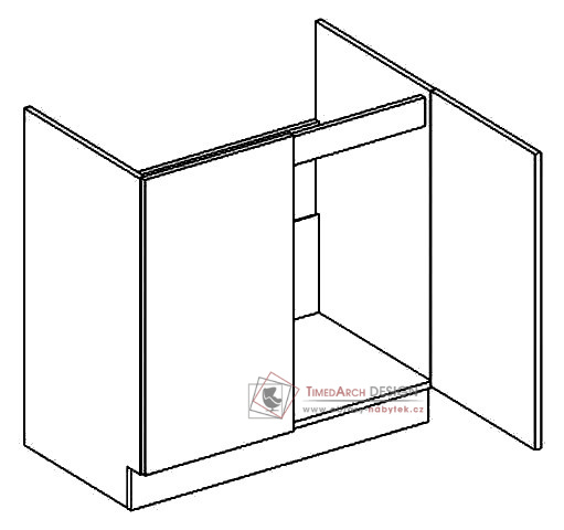 Dolní skříňka pod dřez 2-dvéřová D80ZL GOBI je vyrobená z lamina v provedení korpusu a soklu v popelavě šedé barvě, dvířka v barvě dub sonoma.