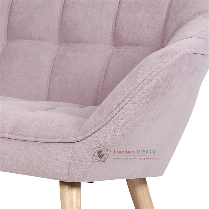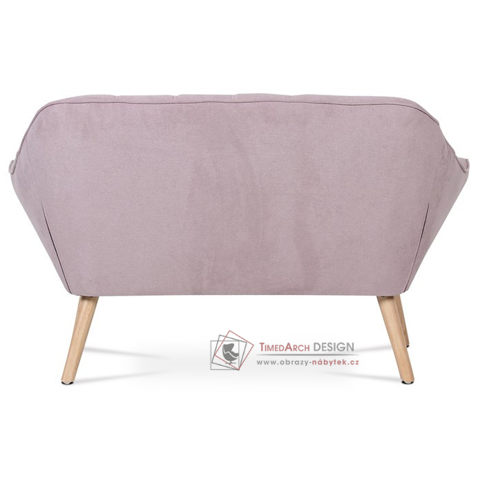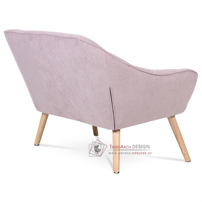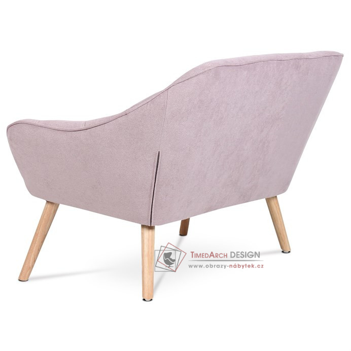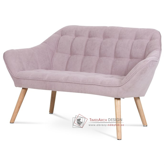 Charakteristickými prvky této dvojsedačky je výrazné čtvercové prošití sedáku i opěráku, masivní sedací korpus s ostrými liniemi v kontrastu s vysokými štíhlými nohami. Sedačka je celočalouněná, včetně zad. Lze ji použít jak k přisazení ke stěně, tak i ve středu místnosti. Může sloužit jako výrazný solitér, nebo s křesly jako sedací souprava. Své uplatnění najde v chodbě, hale, obývacím pokoji i ložnici. Potah je z látky v trendy starorůžovém odstínu, kostra z masivního dřeva, vyplněné je kvalitní PU pěnou. Sedáky jsou ještě zpevněny elastickými popruhy pro zvýšení komfortu pohodlí. Štíhlé kónické nohy jsou z masivního kaučukovníku v přírodním odstínu a lakované transparentním lakem. Poškození podlahových krytin je eliminováno plastovými kluzáky, u zadních nohou jsou rektifikovatelné (výškově nastavitelné). Světlá výška sedačky je 30 cm , výška područek je 59 cm a šíře 10 cm. Nosnost je 150 kg. Pohodlí a vnitřní prostornost této sedačky ocení jistě každý. A pokud si ještě opřete ruce o zvýšené područky a nebo si lehnete, budete dlouho otálet, než sedačku opustíte. Sedačka se typově hodí ke křeslu AK-321.