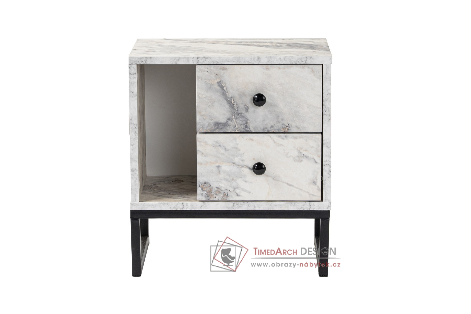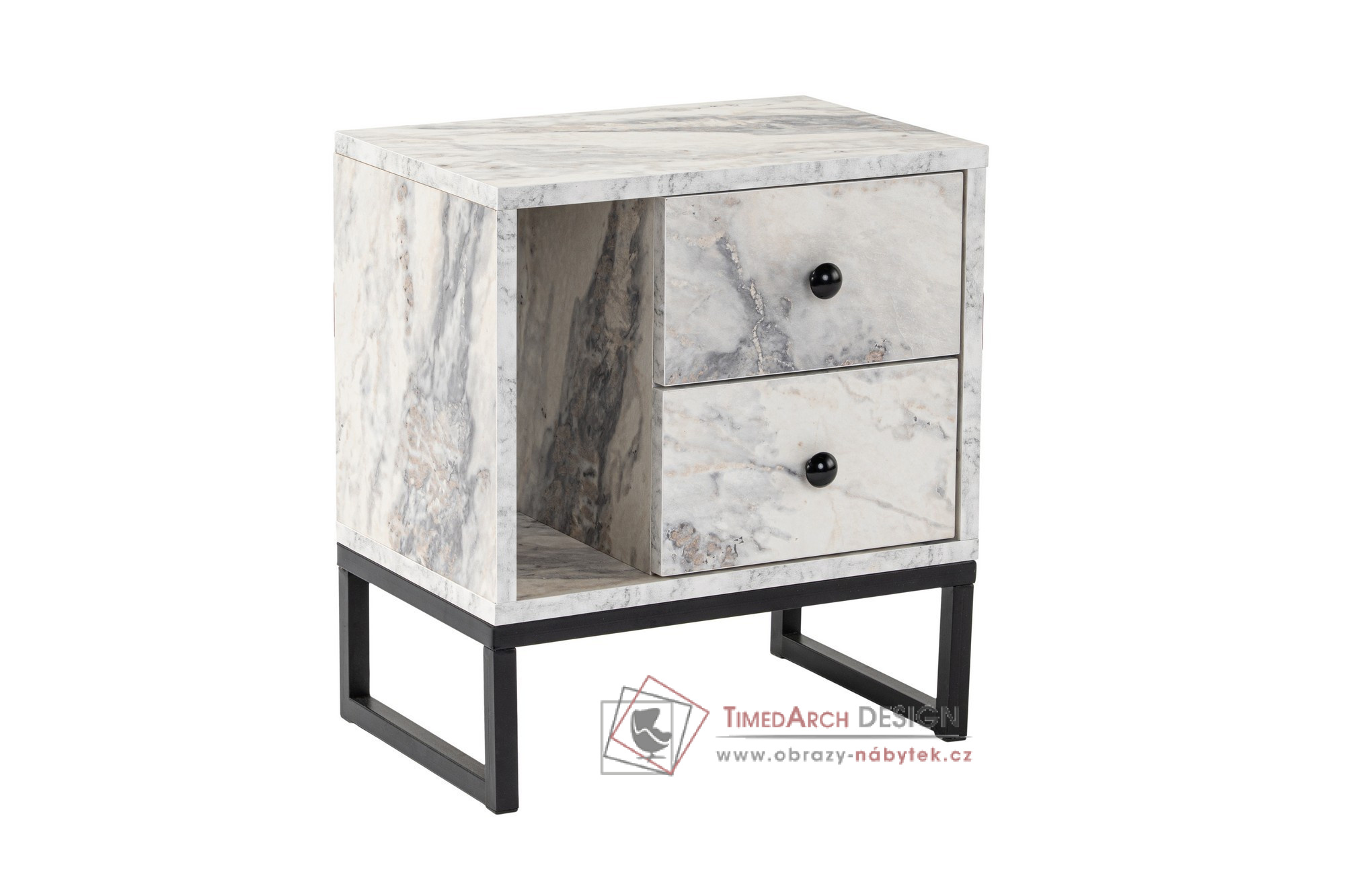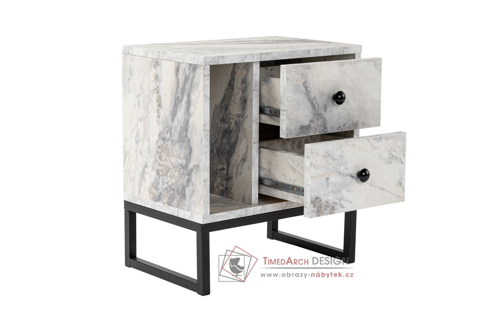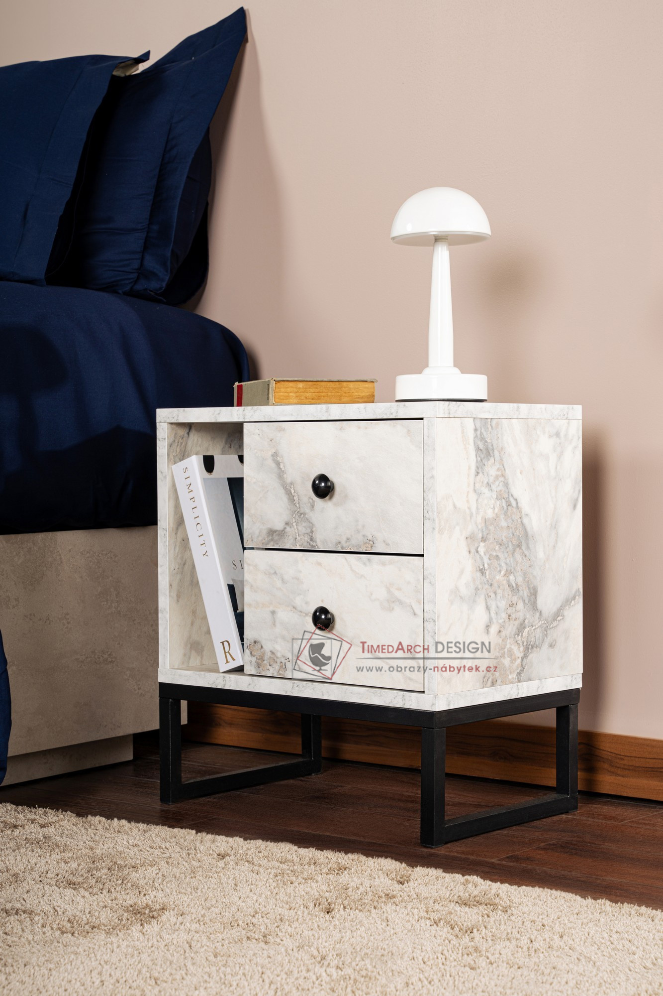 Tento noční stolek je vyroben ze 100% dřevotřísky s melaminovým povlakem a je nejen odolný, ale také neuvěřitelně elegantní. Kovové nohy dodávají nádech sofistikovanosti, díky čemuž je perfektním doplňkem každé moderní ložnice.
